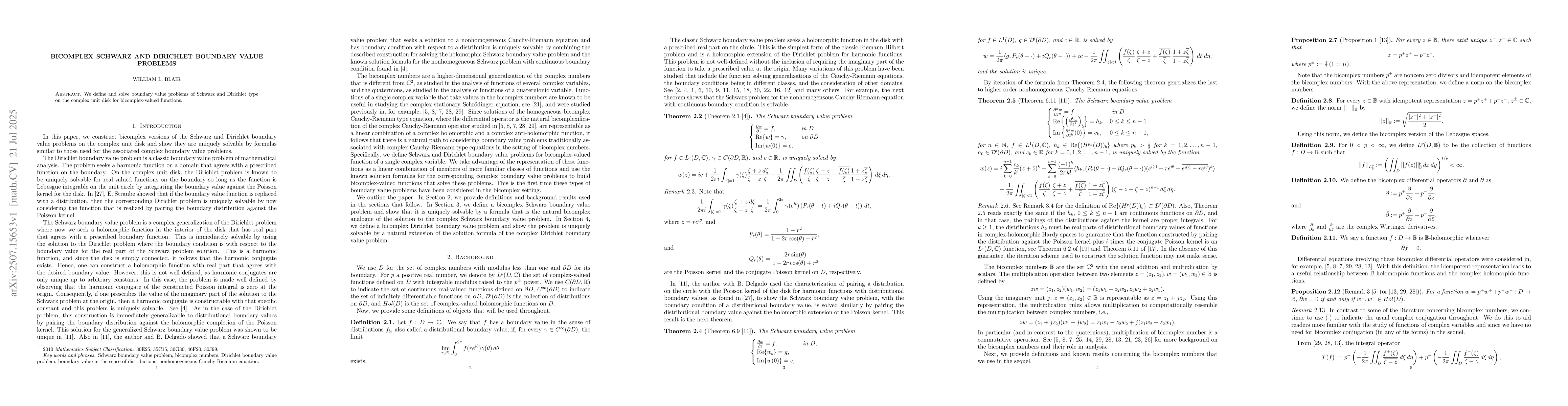 We define and solve boundary value problems of Schwarz and Dirichlet type on the complex unit disk for bicomplex-valued functions.
