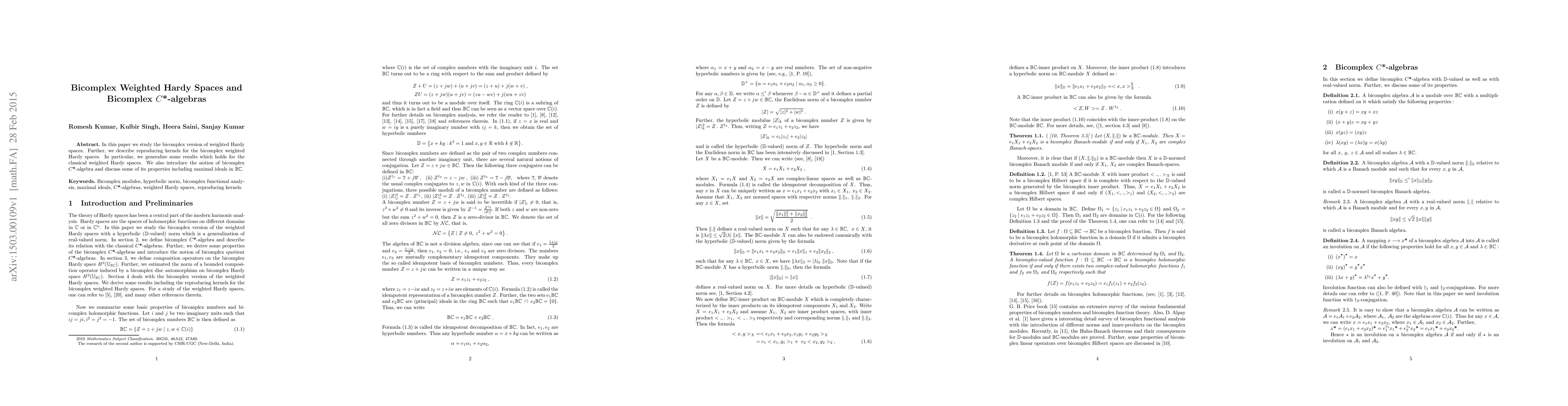 This paper explores bicomplex weighted Hardy spaces and introduces reproducing kernels for these spaces, generalizing classical results. It also defines bicomplex C*-algebras and examines their properties, including the nature of maximal ideals within this new framework.