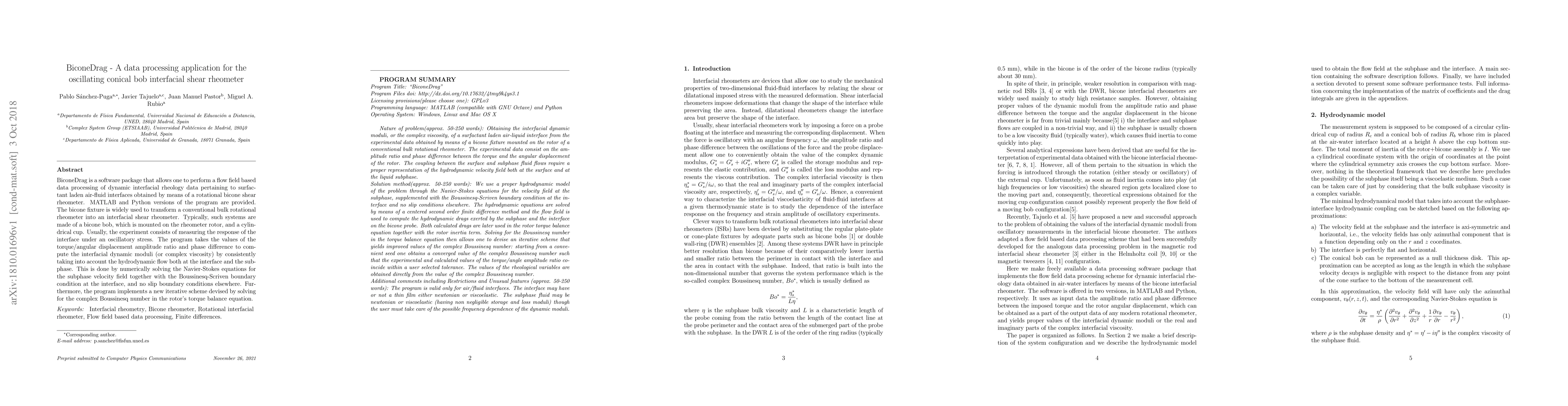 A software package called BiconeDrag helps analyze data from an oscillating conical bob interfacial shear rheometer, providing a more accurate understanding of surfactant-laden air-fluid interfaces.
