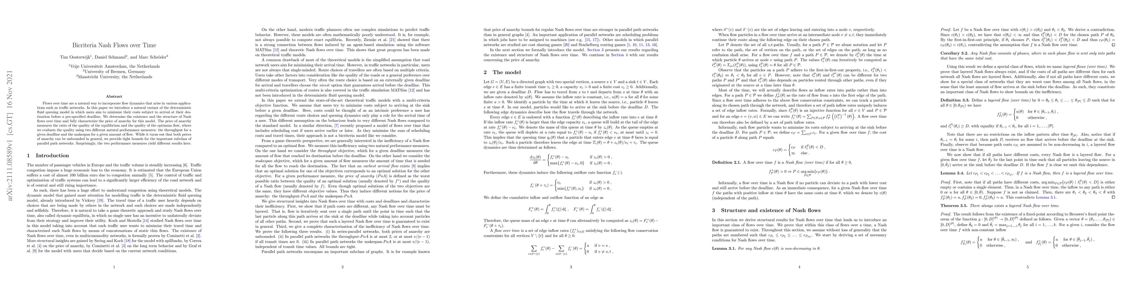 Researchers developed a model to optimize flow over time in applications like traffic networks, finding that prices of anarchy can be unbounded but providing tight bounds for parallel path networks. The two performance measures used yielded different results.