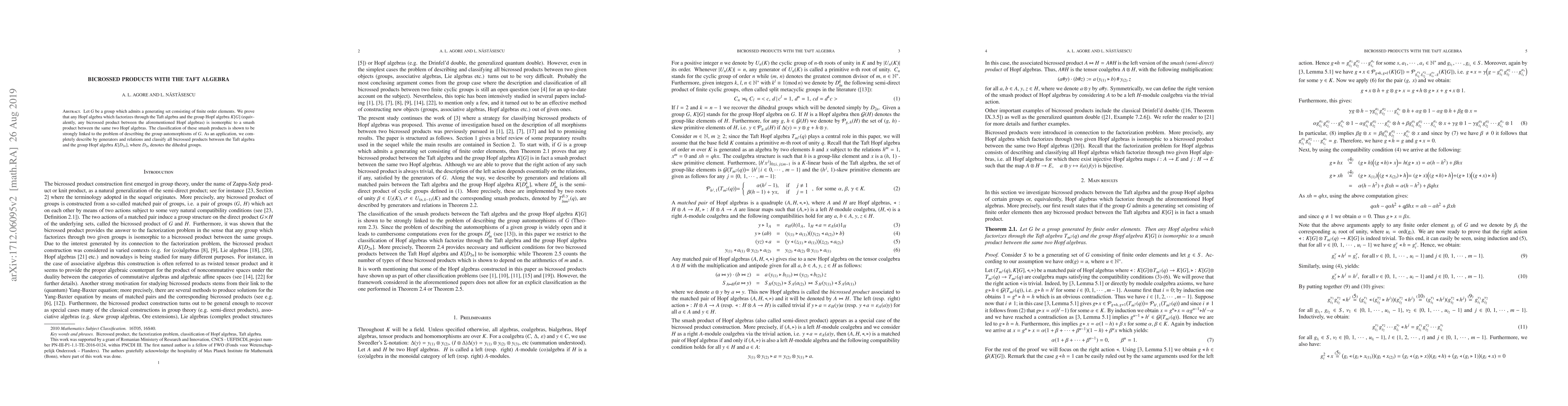 This paper proves that any Hopf algebra factorizing through the Taft algebra and the group Hopf algebra $K[G]$ is isomorphic to a smash product between these two Hopf algebras. It classifies these products based on group automorphisms and fully describes bicrossed products between the Taft algebra and the dihedral group Hopf algebra $K[D_{2n}]$.