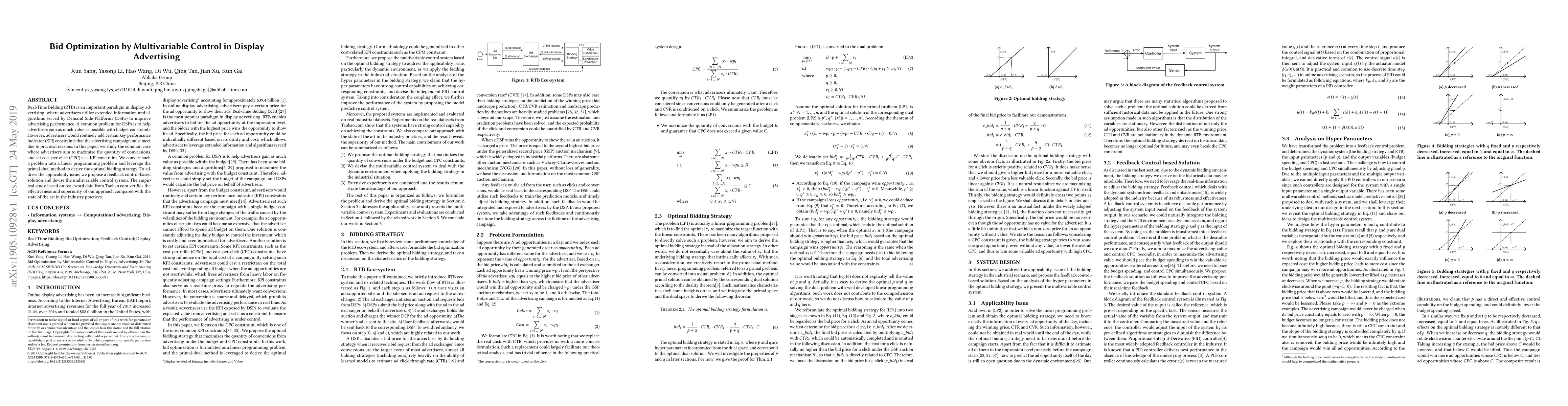 This paper explores optimizing real-time bidding in display advertising through a linear programming approach, focusing on maximizing conversions while adhering to cost-per-click constraints. It proposes a multivariable control system and verifies its effectiveness through empirical studies on Taobao.com data, demonstrating superior performance compared to current industry practices.