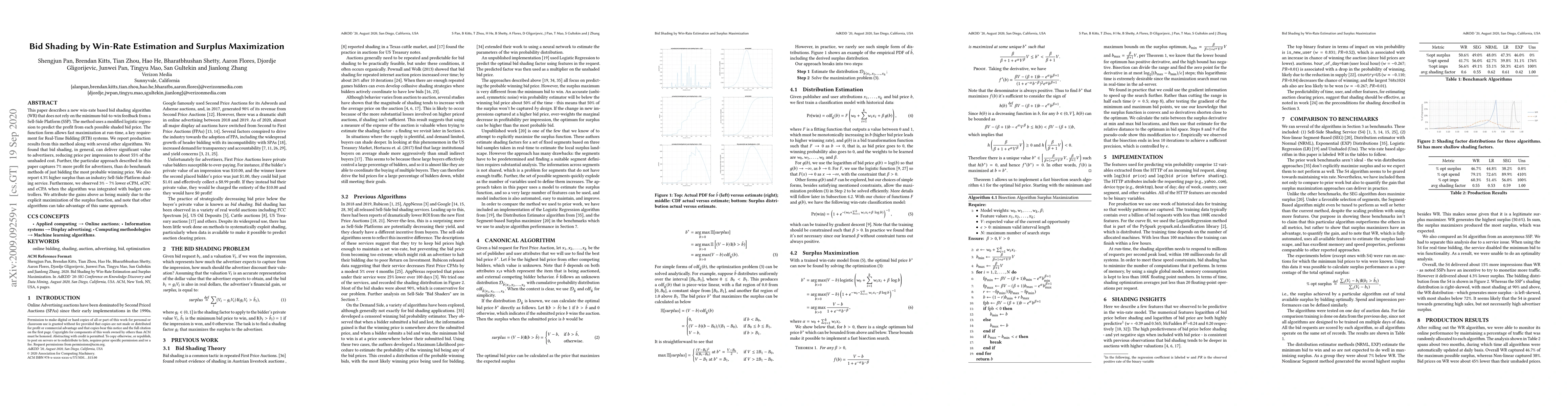 A new bid shading algorithm uses win-rate estimation to predict profit from shaded bids, achieving 7% more profit for advertisers than benchmark methods, while reducing price per impression by 55%.