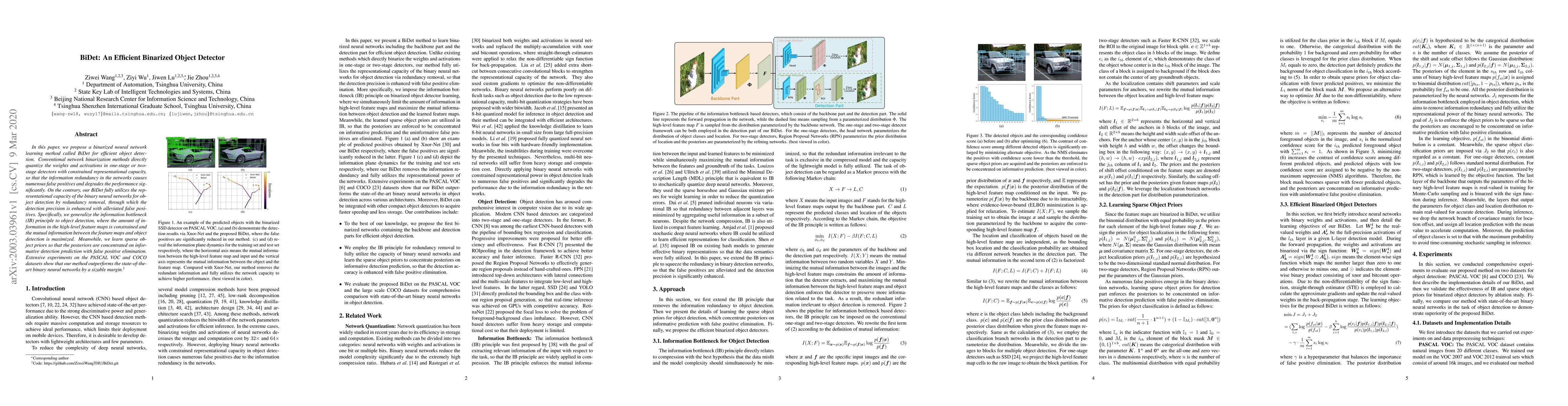 This paper proposes BiDet, a method for efficient object detection that utilizes binary neural networks with redundancy removal to enhance precision and reduce false positives. It outperforms state-of-the-art methods on PASCAL VOC and COCO datasets.
