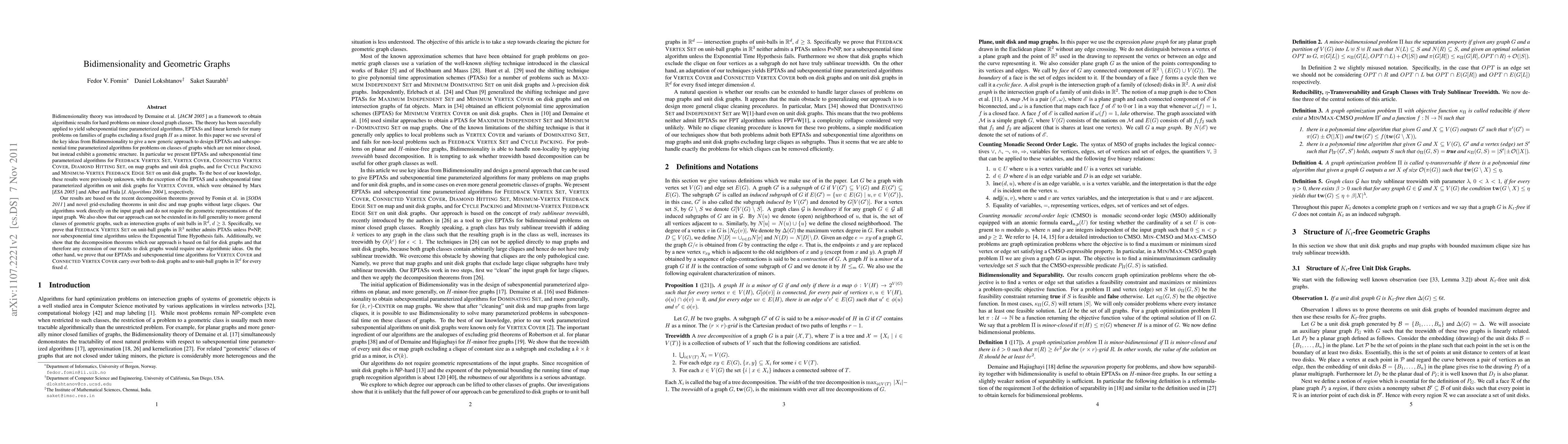 This paper introduces a new approach leveraging bidimensionality to design efficient parameterized algorithms for geometric graph problems, such as Feedback Vertex Set and Vertex Cover, on map and unit disk graphs. The authors demonstrate that their methods do not extend to more general geometric graphs like unit-ball graphs in higher dimensions, highlighting limitations and the need for new algorithmic ideas.
