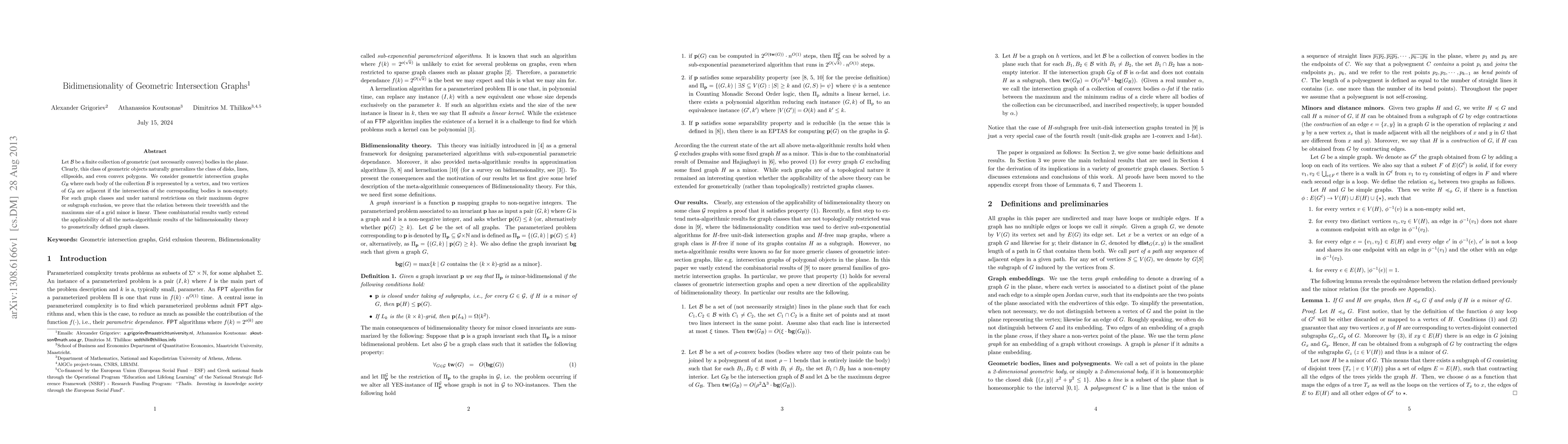 This paper establishes a linear relationship between the treewidth and the maximum size of a grid minor for geometric intersection graphs under restrictions on their degree or subgraph exclusion. This extends the applicability of bidimensionality theory to various classes of geometric objects beyond just disks and convex polygons.