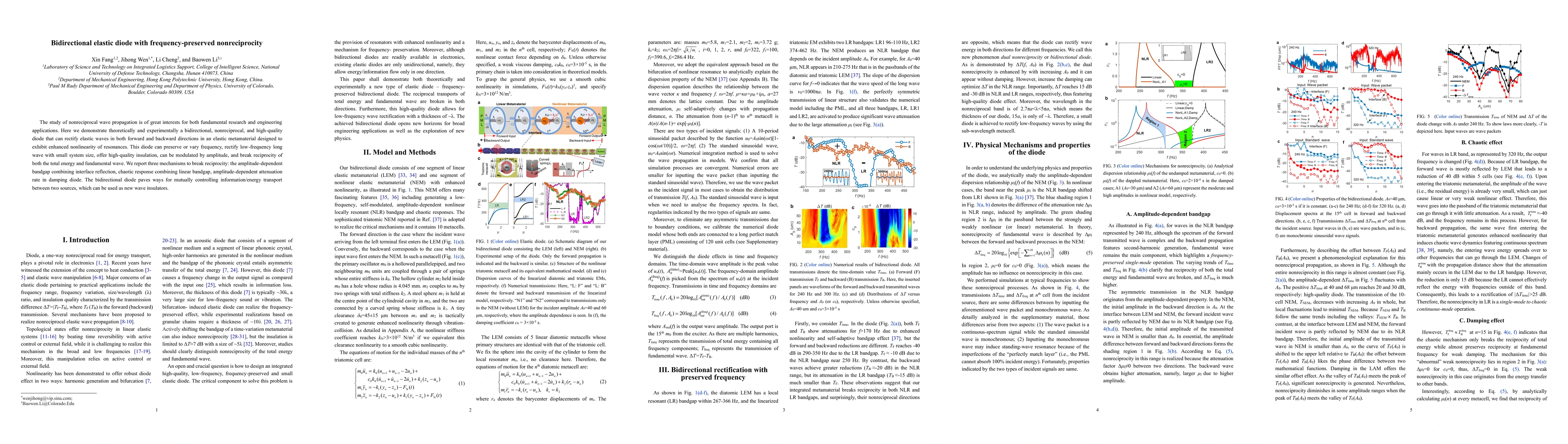 The study of nonreciprocal wave propagation is of great interests for both fundamental research and engineering applications. Here we demonstrate theoretically and experimentally a bidirectional, nonreciprocal, and high-quality diode that can rectify elastic waves in both forward and backward directions in an elastic metamaterial designed to exhibit enhanced nonlinearity of resonances. This diode can preserve or vary frequency, rectify low-frequency long wave with small system size, offer high-quality insulation, can be modulated by amplitude, and break reciprocity of both the total energy and fundamental wave. We report three mechanisms to break reciprocity: the amplitude-dependent bandgap combining interface reflection, chaotic response combining linear bandgap, amplitude-dependent attenuation rate in damping diode. The bidirectional diode paves ways for mutually controlling information/energy transport between two sources, which can be used as new wave insulators.