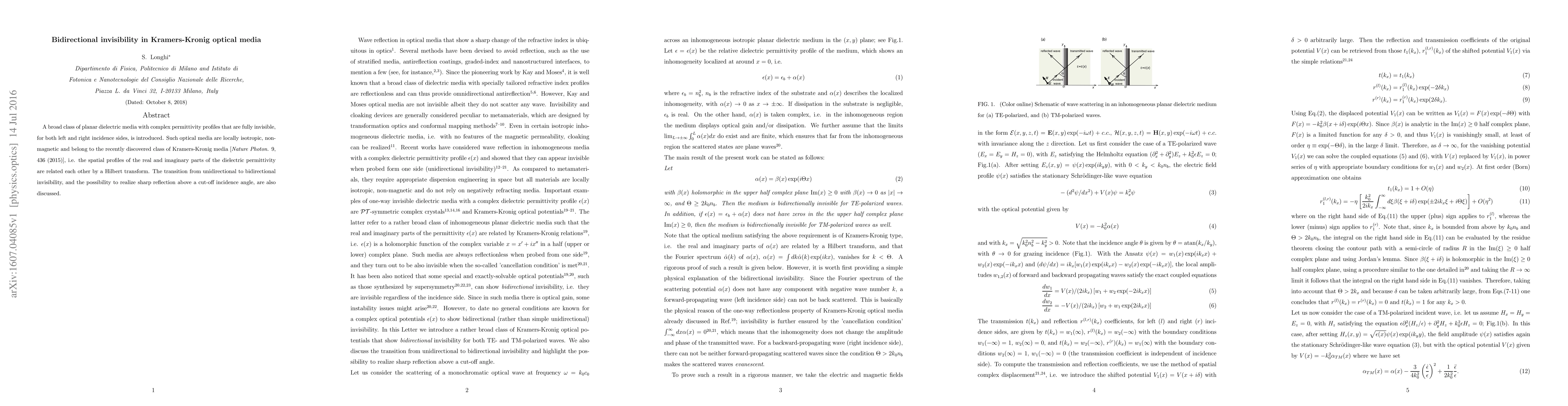 This paper introduces a class of planar dielectric media that achieve bidirectional invisibility by utilizing Kramers-Kronig relations, ensuring transparency for both left and right incidences. The study also explores the transition to bidirectional invisibility and the potential for sharp reflection above a critical incidence angle.