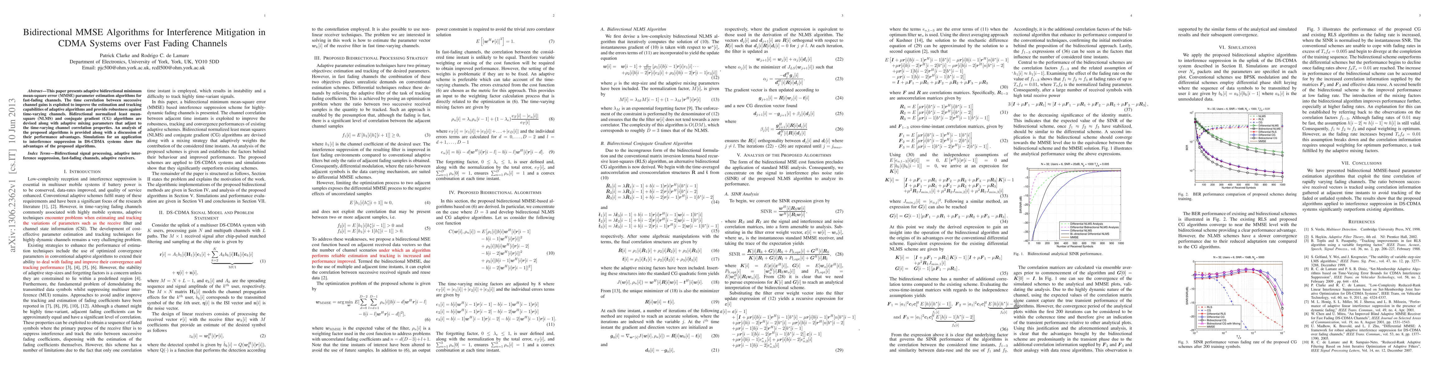 This paper introduces adaptive bidirectional MMSE algorithms for interference mitigation in CDMA systems over fast-fading channels, leveraging time correlation to improve estimation and tracking. Simulation results demonstrate the effectiveness of the proposed bidirectional NLMS and CG algorithms in suppressing interference.