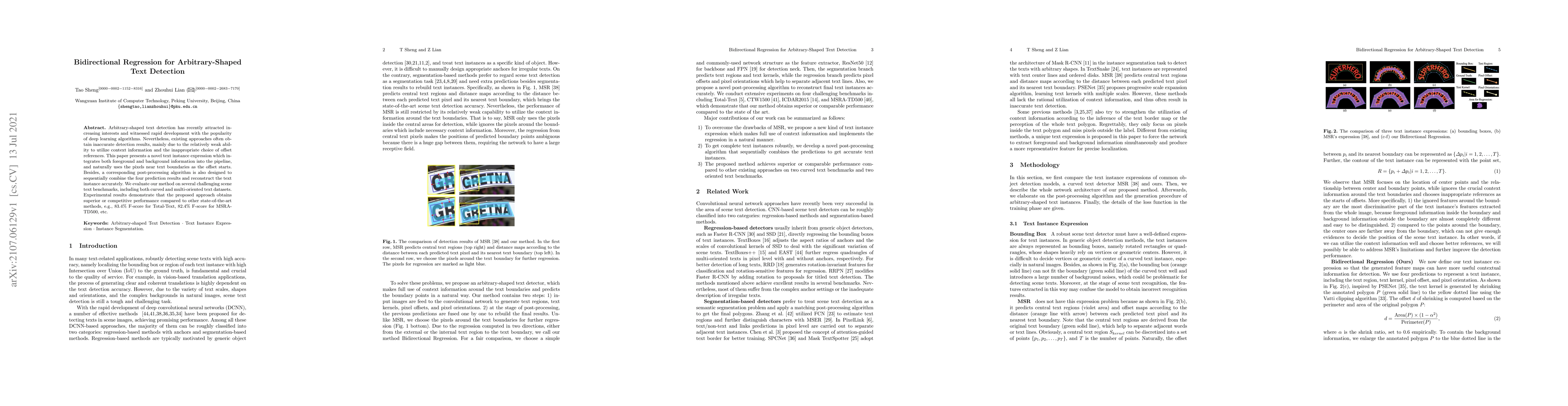 This paper introduces a novel bidirectional regression method for detecting arbitrary-shaped text, integrating context information and using pixels near text boundaries for better offset references. The method achieves superior performance on scene text benchmarks, outperforming other state-of-the-art methods.