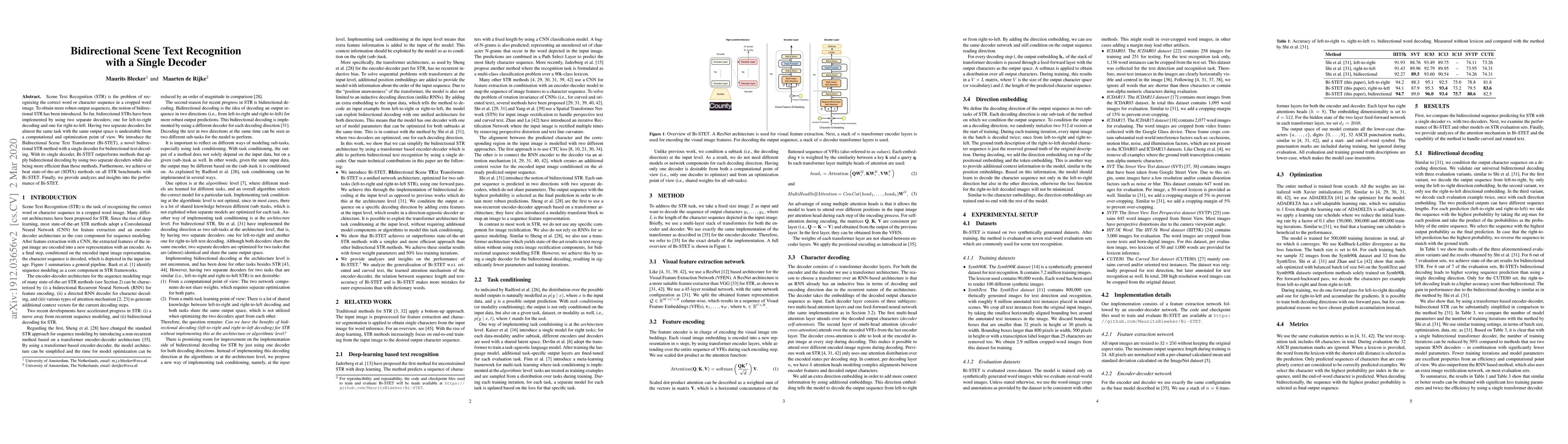 This paper introduces the Bidirectional Scene Text Transformer (Bi-STET), a novel method for bidirectional scene text recognition using a single decoder, which outperforms traditional methods using two separate decoders. Bi-STET achieves state-of-the-art results on various benchmarks while being more efficient.