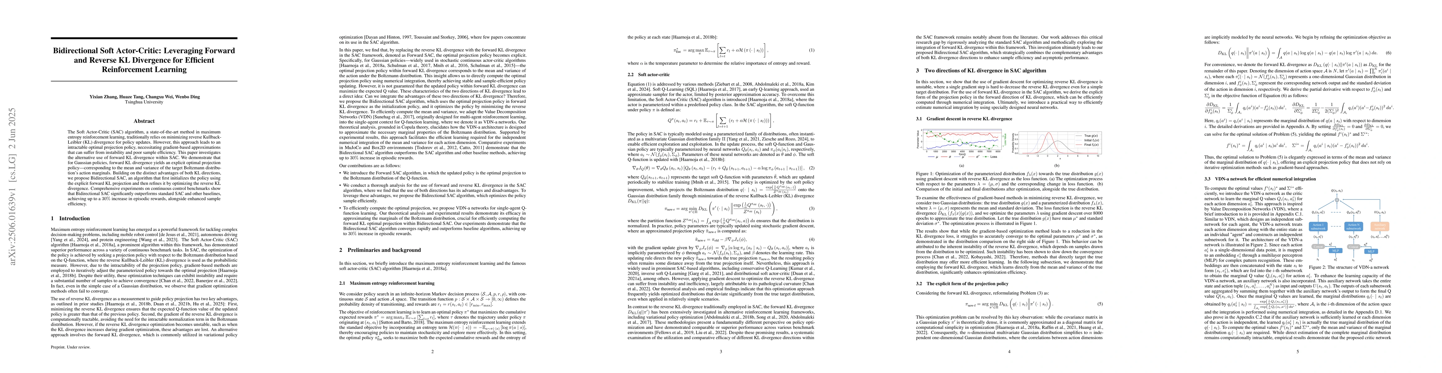 A new algorithm called Bidirectional SAC outperforms traditional Soft Actor-Critic by leveraging both forward and reverse KL divergence for efficient reinforcement learning, leading to a 30% increase in episodic rewards.