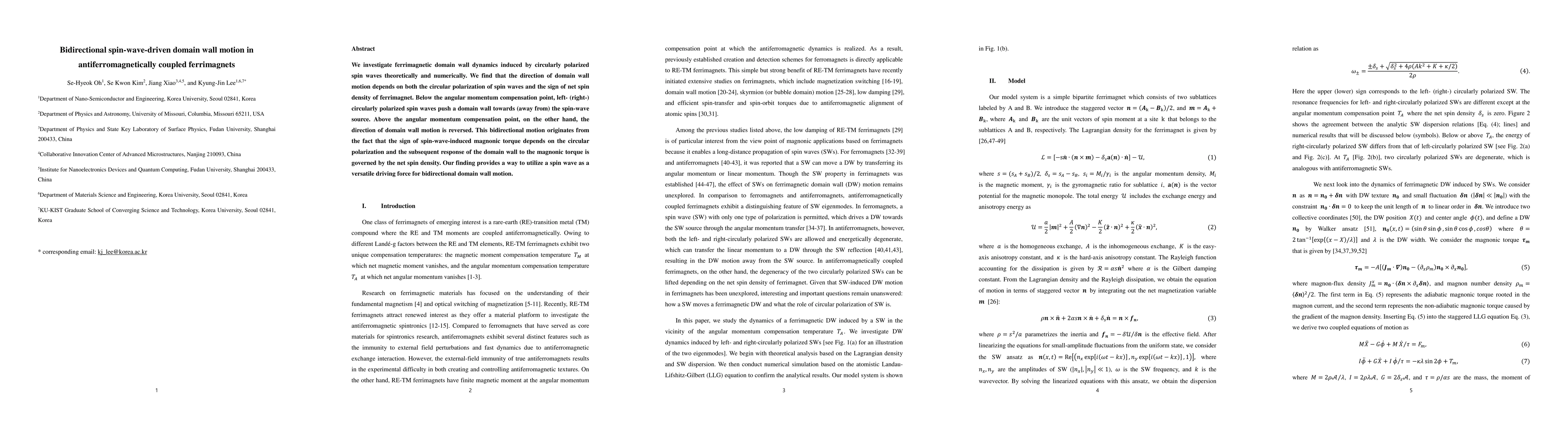 This research investigates how spin waves can induce bidirectional domain wall motion in ferrimagnetic materials, finding that the direction depends on spin wave polarization and net spin density. Below a certain threshold, spin waves push the domain wall towards or away from the source based on polarization, while above this threshold, the motion reverses.