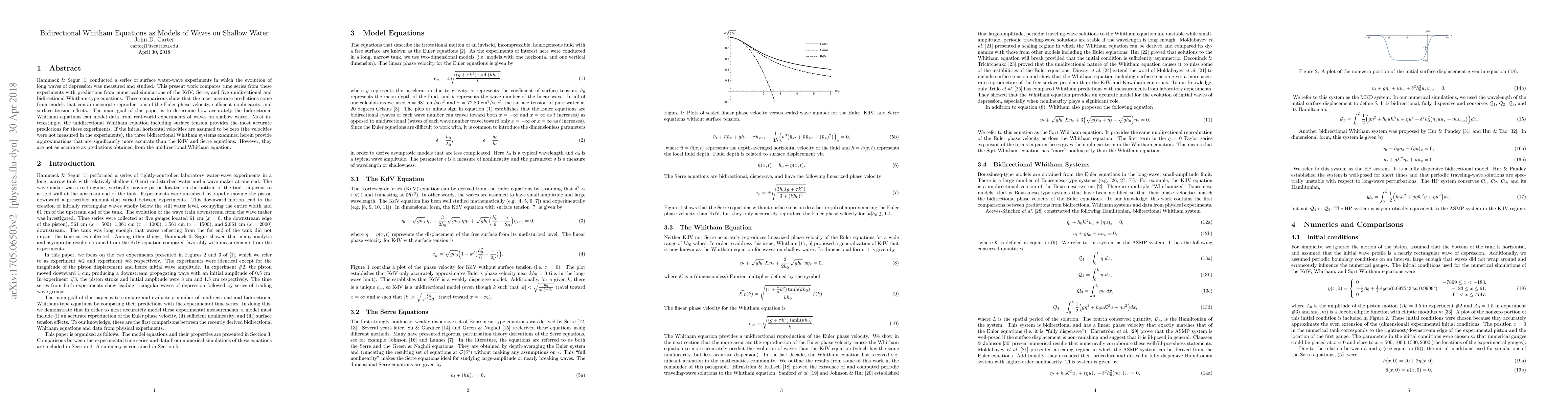 This paper investigates the accuracy of bidirectional Whitham equations in modeling shallow water wave experiments. It finds that while bidirectional models provide better approximations than the KdV and Serre equations when initial horizontal velocities are zero, the unidirectional Whitham equation, including surface tension, yields the most accurate predictions.