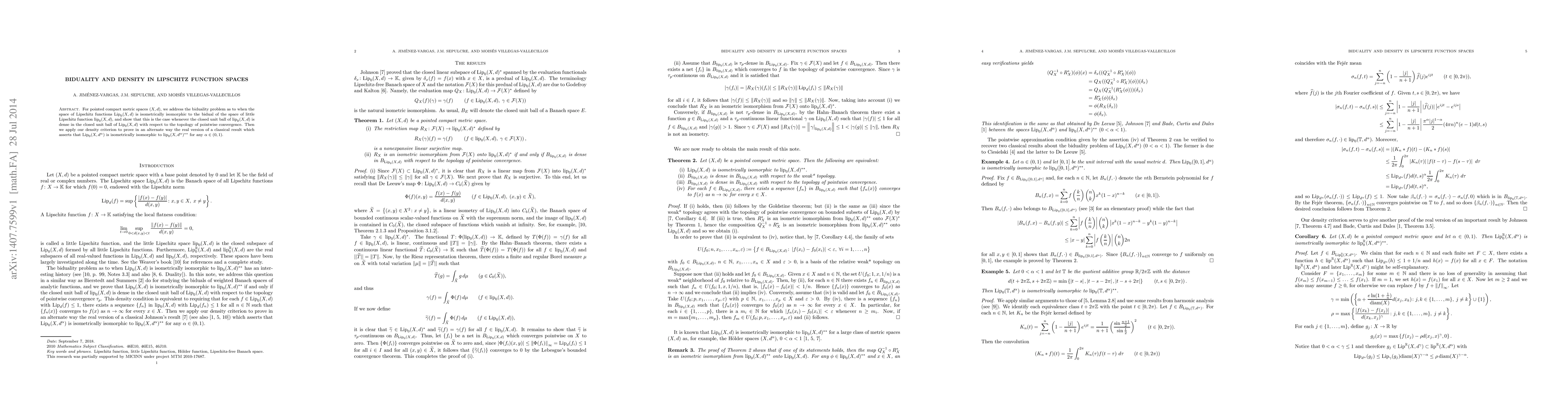 This paper explores the biduality of Lipschitz function spaces on pointed compact metric spaces, proving that $\mathrm{Lip}_0(X,d)$ is isometrically isomorphic to $\mathrm{lip}_0(X,d)^{**}$ when the closed unit ball of $\mathrm{lip}_0(X,d)$ is pointwise dense in that of $\mathrm{Lip}_0(X,d)$. It also reproves the real version of a classical result for $\alpha \in (0,1)$.