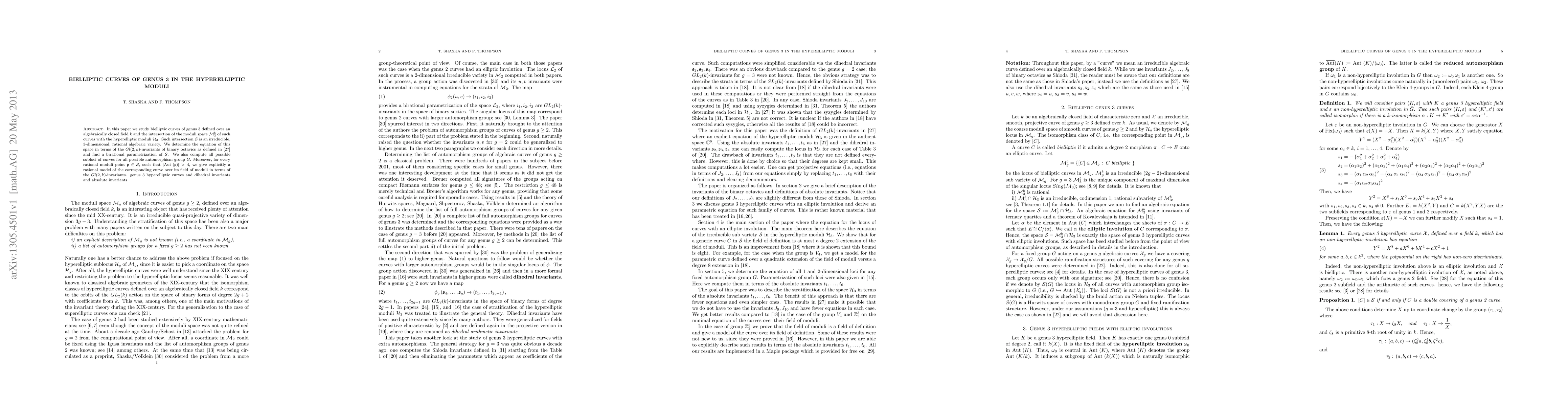 This paper investigates bielliptic curves of genus 3 and their intersection with hyperelliptic moduli, determining a birational parametrization and equations in terms of $Gl(2, k)$-invariants. It also provides explicit rational models for curves with automorphism groups larger than size 4.