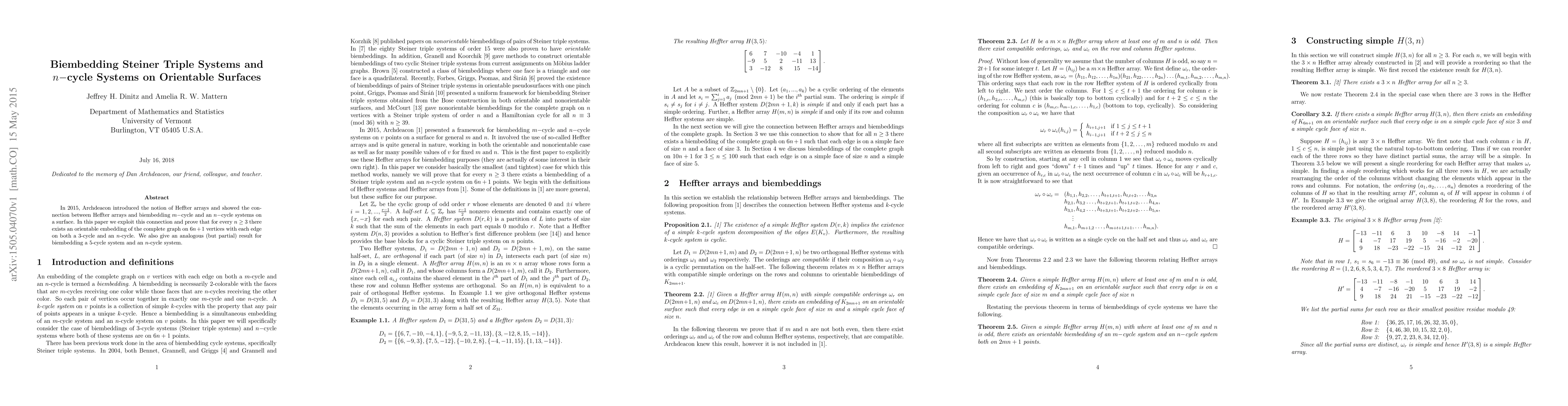 This paper proves the existence of orientable embeddings of complete graphs on 6n+1 vertices where each edge belongs to both a 3-cycle and an n-cycle, extending Archdeacon's work on Heffter arrays. It also provides a partial result for biembedding a 5-cycle system with an n-cycle system.