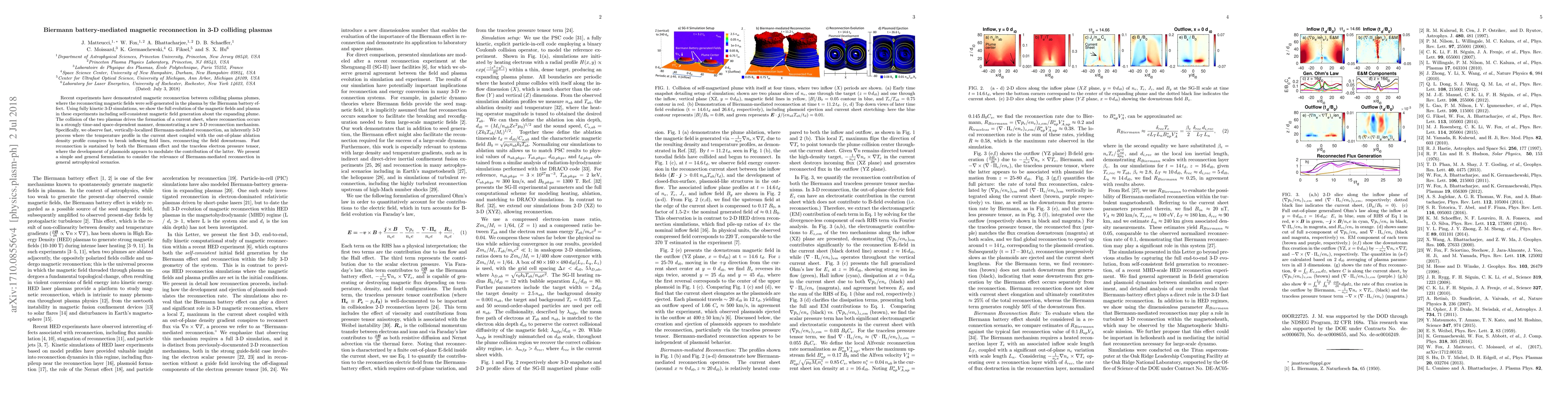 Researchers used 3D simulations to study magnetic reconnection in colliding plasmas, discovering a new mechanism called Biermann battery-mediated reconnection that occurs rapidly and is sustained by the interaction between plasma temperature and density.