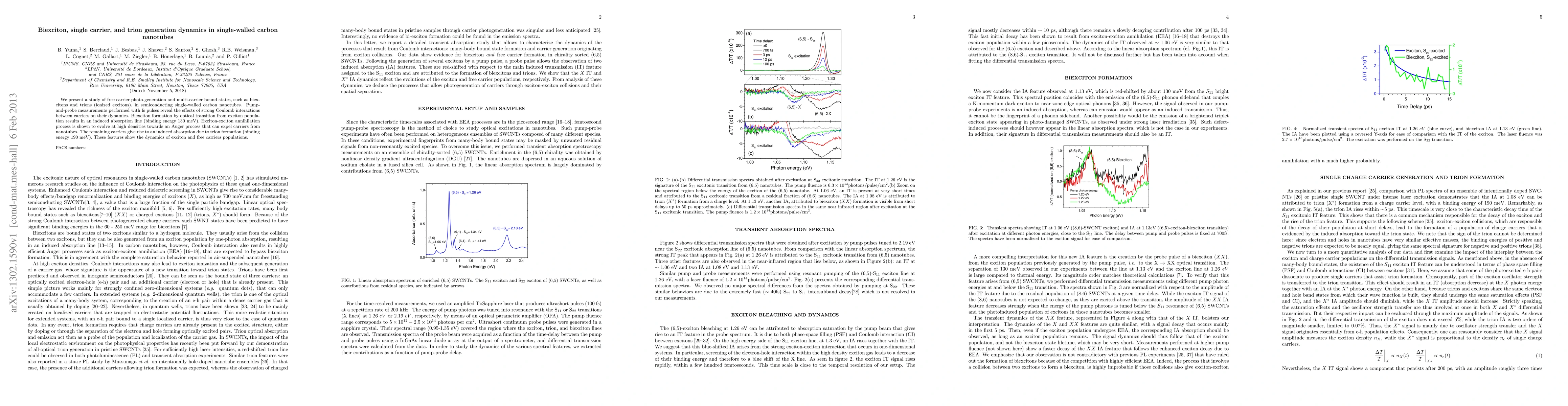 This study investigates the dynamics of photo-generated carriers in semiconducting single-walled carbon nanotubes, revealing how Coulomb interactions affect biexciton and trion formation. High-density conditions promote exciton-exciton annihilation leading to Auger processes and carrier expulsion.