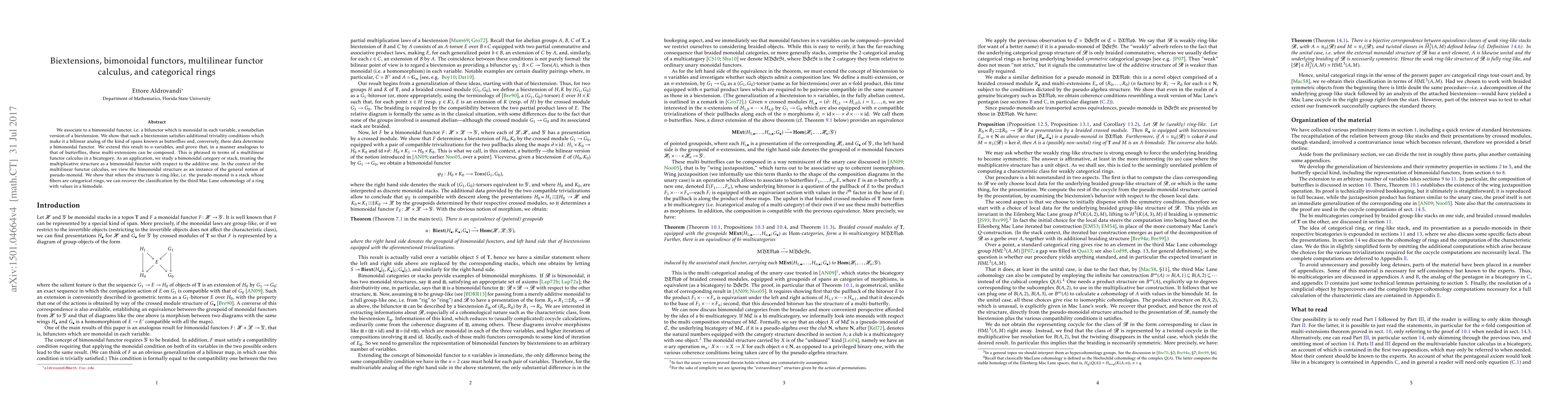 We associate to a bimonoidal functor, i.e. a bifunctor which is monoidal in each variable, a nonabelian version of a biextension. We show that such a biextension satisfies additional triviality conditions which make it a bilinear analog of the kind of spans known as butterflies and, conversely, these data determine a bimonoidal functor. We extend this result to $n$-variables, and prove that, in a manner analogous to that of butterflies, these multi-extensions can be composed. This is phrased in terms of a multilinear functor calculus in a bicategory. As an application, we study a bimonoidal category or stack, treating the multiplicative structure as a bimonoidal functor with respect to the additive one. In the context of the multilinear functor calculus, we view the bimonoidal structure as an instance of the general notion of pseudo-monoid. We show that when the structure is ring-like, i.e. the pseudo-monoid is a stack whose fibers are categorical rings, we can recover the classification by the third Mac Lane cohomology of a ring with values in a bimodule.