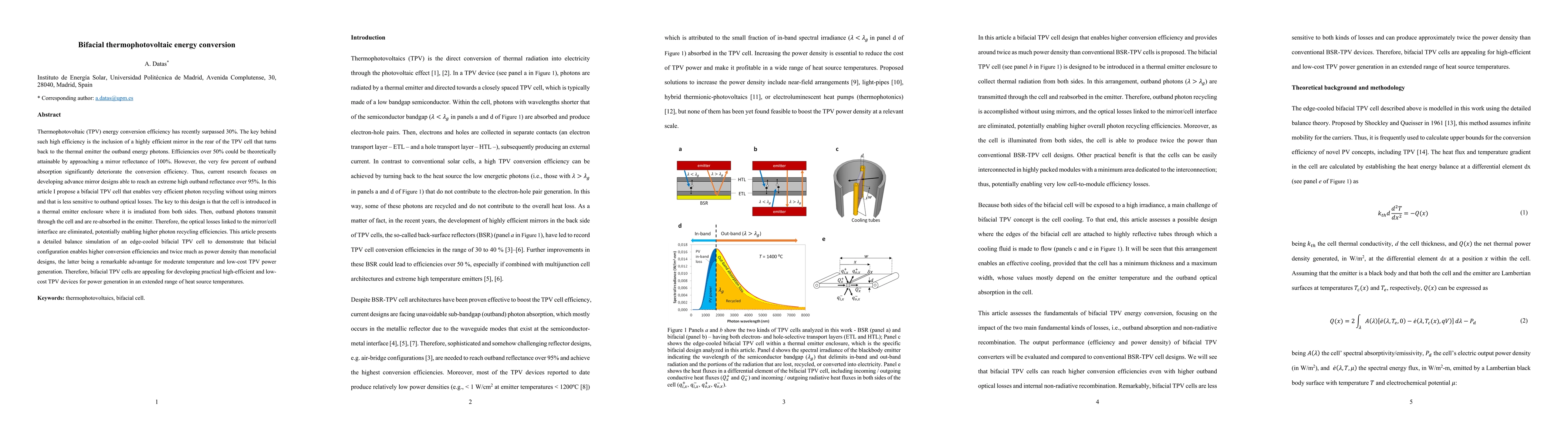 The paper introduces a bifacial TPV cell design that eliminates optical losses linked to the mirror/cell interface, potentially enabling higher photon recycling efficiencies and higher overall performance.