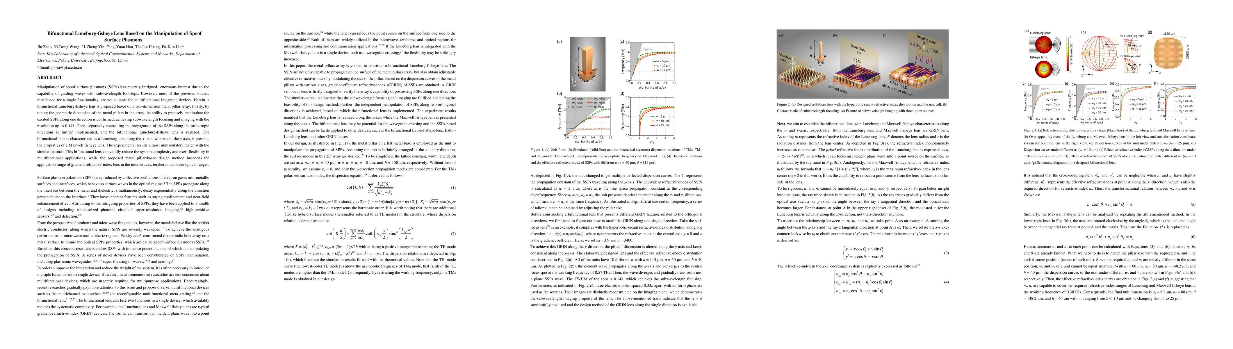 This paper proposes a bifunctional Luneburg-fisheye lens utilizing a two-dimensional metal pillar array to manipulate spoof surface plasmons. The design achieves subwavelength focusing and imaging, and separately controls SSP propagation in orthogonal directions, realizing both Luneburg and Maxwell fisheye lens functionalities.