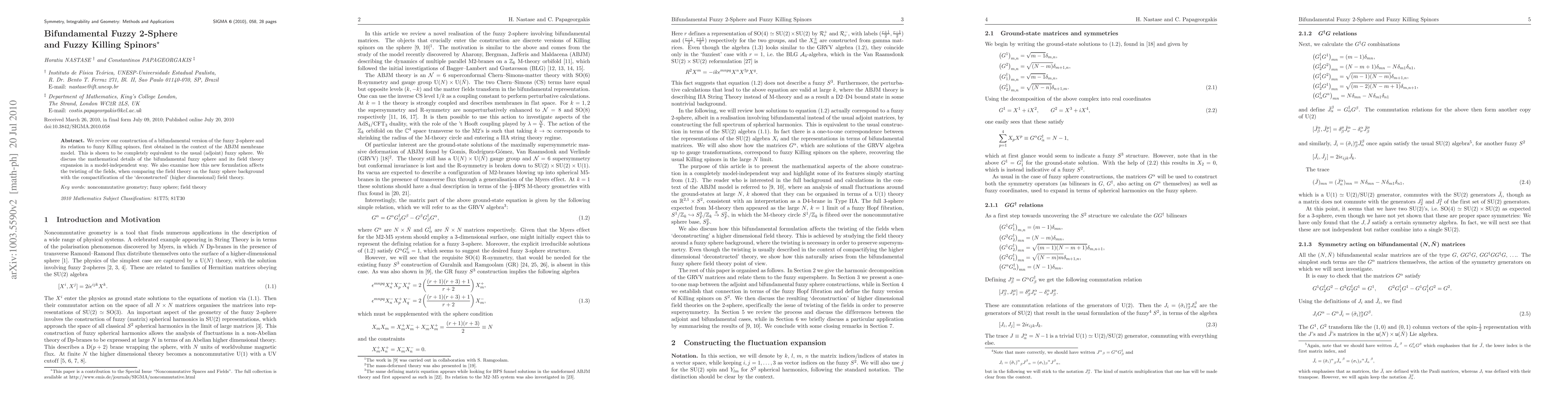 We review our construction of a bifundamental version of the fuzzy 2-sphere and its relation to fuzzy Killing spinors, first obtained in the context of the ABJM membrane model. This is shown to be completely equivalent to the usual (adjoint) fuzzy sphere. We discuss the mathematical details of the bifundamental fuzzy sphere and its field theory expansion in a model-independent way. We also examine how this new formulation affects the twisting of the fields, when comparing the field theory on the fuzzy sphere background with the compactification of the 'deconstructed' (higher dimensional) field theory.