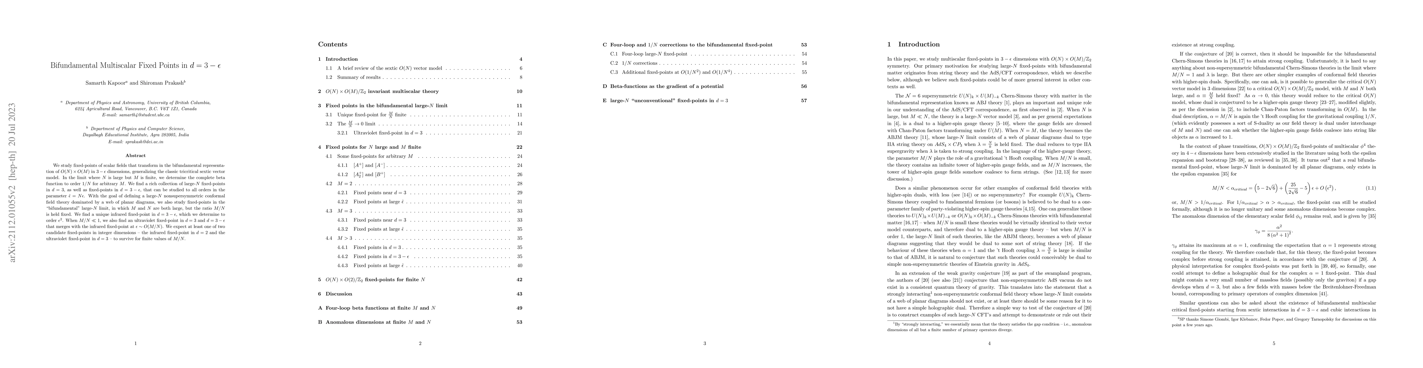 We study fixed-points of scalar fields that transform in the bifundamental representation of $O(N)\times O(M)$ in $3-\epsilon$ dimensions, generalizing the classic tricritical sextic vector model. In the limit where $N$ is large but $M$ is finite, we determine the complete beta function to order $1/N$ for arbitrary $M$. We find a rich collection of large-$N$ fixed-points in $d=3$, as well as fixed-points in $d=3-\epsilon$, that can be studied to all orders in the parameter $\hat{\epsilon}=N\epsilon$. With the goal of defining a large-$N$ nonsupersymmetric conformal field theory dominated by a web of planar diagrams, we also study fixed-points in the ``bifundamental'' large-$N$ limit, in which $M$ and $N$ are both large, but the ratio $M/N$ is held fixed. We find a unique infrared fixed-point in $d=3-\epsilon$, which we determine to order $\epsilon^2$. When $M/N \ll 1$, we also find an ultraviolet fixed-point in $d=3$ and $d=3-\epsilon$ that merges with the infrared fixed-point at $\epsilon \sim O(M/N)$. We expect at least one of two candidate fixed-points in integer dimensions -- the infrared fixed-point in $d=2$ and the ultraviolet fixed-point in $d=3$ -- to survive for finite values of $M/N$.