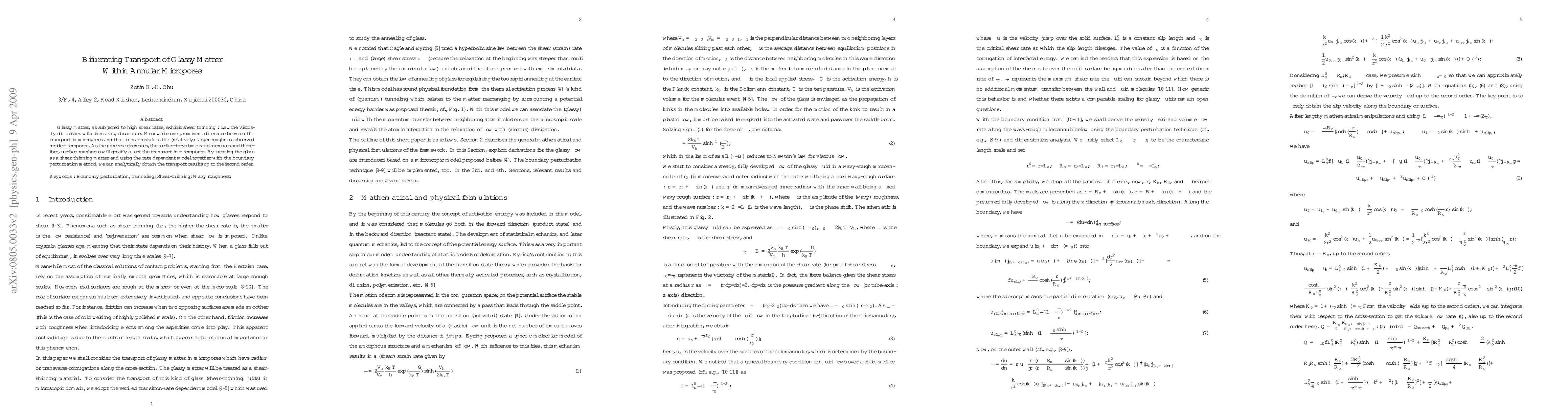 This paper explores the transport behavior of shear-thinning glassy matter within annular micropores, demonstrating how surface roughness significantly impacts transport due to increased surface-to-volume ratios. Analytical models incorporating rate-dependent viscosity and boundary perturbation methods provide detailed transport results.