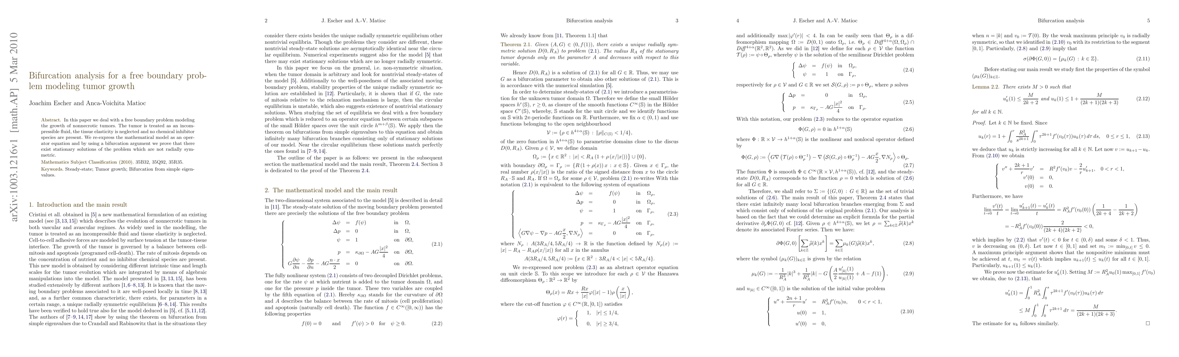 This paper investigates a free boundary problem for nonnecrotic tumor growth, modeling the tumor as an incompressible fluid. It demonstrates the existence of non-radially symmetric stationary solutions through a bifurcation analysis.