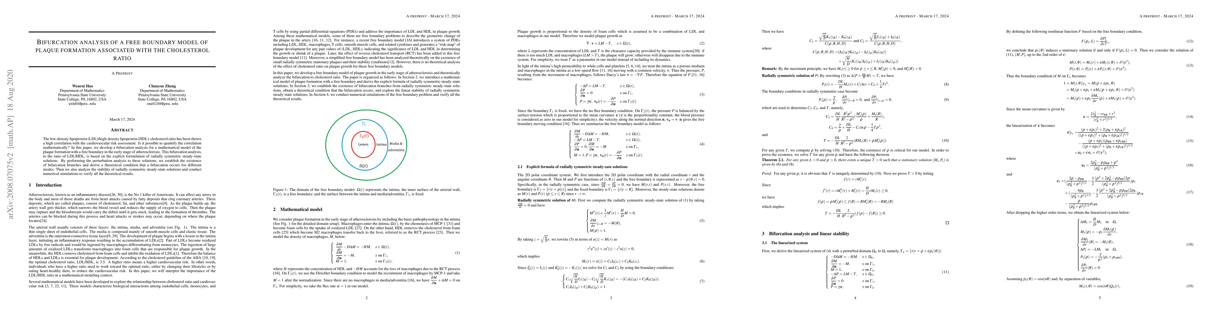 Researchers developed a mathematical model to study plaque formation in atherosclerosis, finding that changes in the LDL/HDL cholesterol ratio can lead to bifurcation points where new disease states emerge. The study provides insight into the potential correlation between this ratio and cardiovascular risk.
