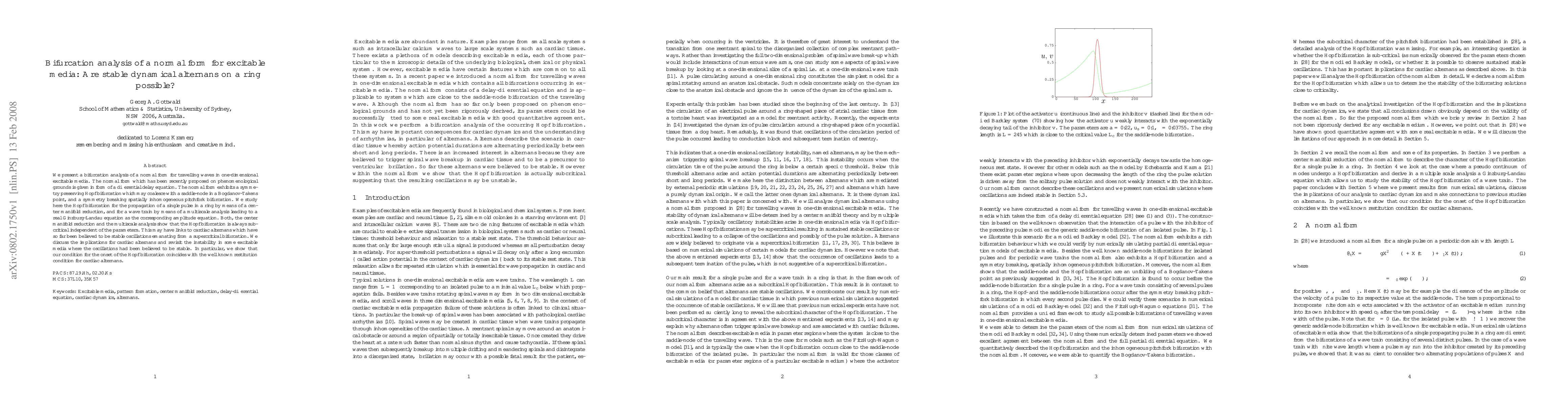 This paper conducts a bifurcation analysis of a normal form for excitable media, revealing that a subcritical Hopf bifurcation occurs in both single pulse and wave train propagation on a ring. This challenges the belief that cardiac alternans arise from supercritical bifurcations, suggesting instead a link to the restitution condition.
