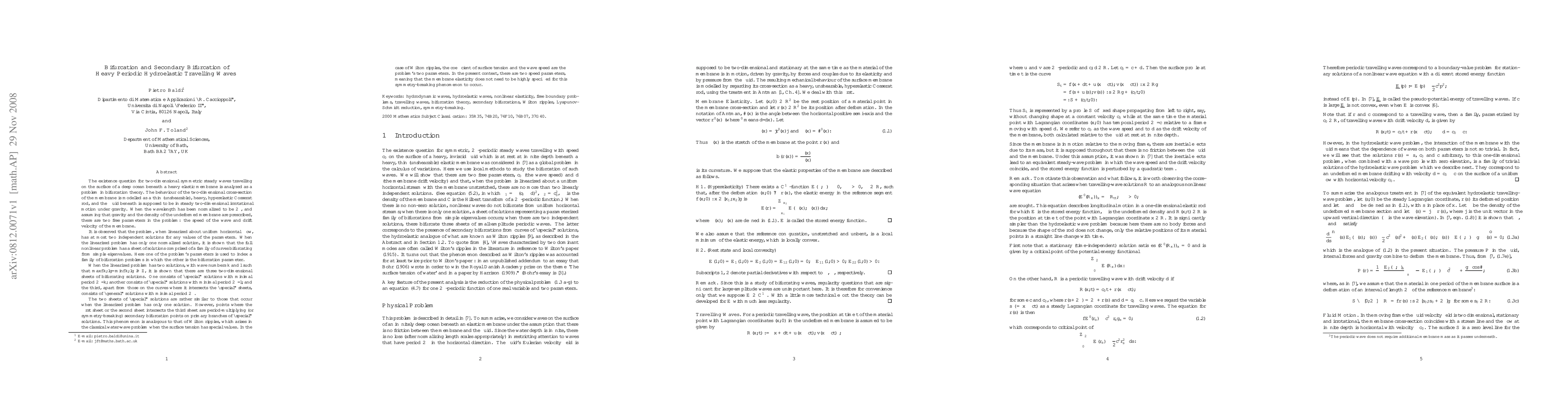 The paper deals with a problem of interaction between hydrodynamics and mechanics of nonlinear elastic bodies. The existence question for two-dimensional symmetric steady waves travelling on the surface of a deep ocean beneath a heavy elastic membrane is analyzed as a problem in bifurcation theory. The behaviour of the two-dimensional cross-section of the membrane is modelled as a thin (unshearable), heavy, hyperelastic Cosserat rod, following Antman's elasticity theory, and the fluid beneath is supposed to be in steady 2D irrotational motion under gravity. Assuming that gravity and the density of the undeformed membrane are prescribed, the free parameters of the problem are the speed of the wave and drift velocity of the membrane. The analysis relies upon a conformal formulation of the hydro-elastic problem developed in previous papers; the basic tool for the study of the bifurcation picture is the implicit function theorem, under some non-resonance assumptions. The most interesting part of the final result is the existence of a symmetry-breaking 'third sheet' of solutions, which bifurcates from primary sheets, and is a hydro-elastic analogue of the phenomenon known as 'Wilton ripples' in the surface tension case.