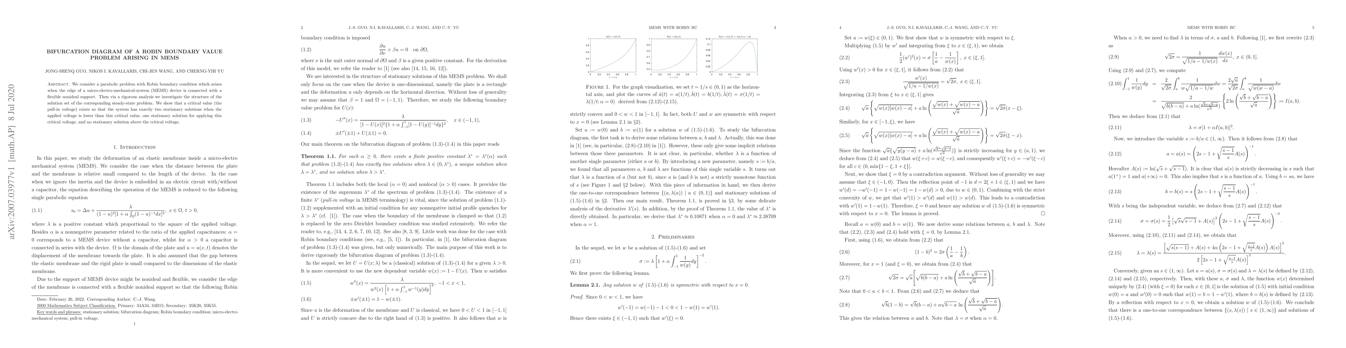 We consider a parabolic problem with Robin boundary condition which arises when the edge of a micro-electro-mechanical-system (MEMS) device is connected with a flexible nonideal support. Then via a rigorous analysis we investigate the structure of the solution set of the corresponding steady-state problem. We show that a critical value (the pull-in voltage) exists so that the system has exactly two stationary solutions when the applied voltage is lower than this critical value, one stationary solution for applying this critical voltage, and no stationary solution above the critical voltage.
