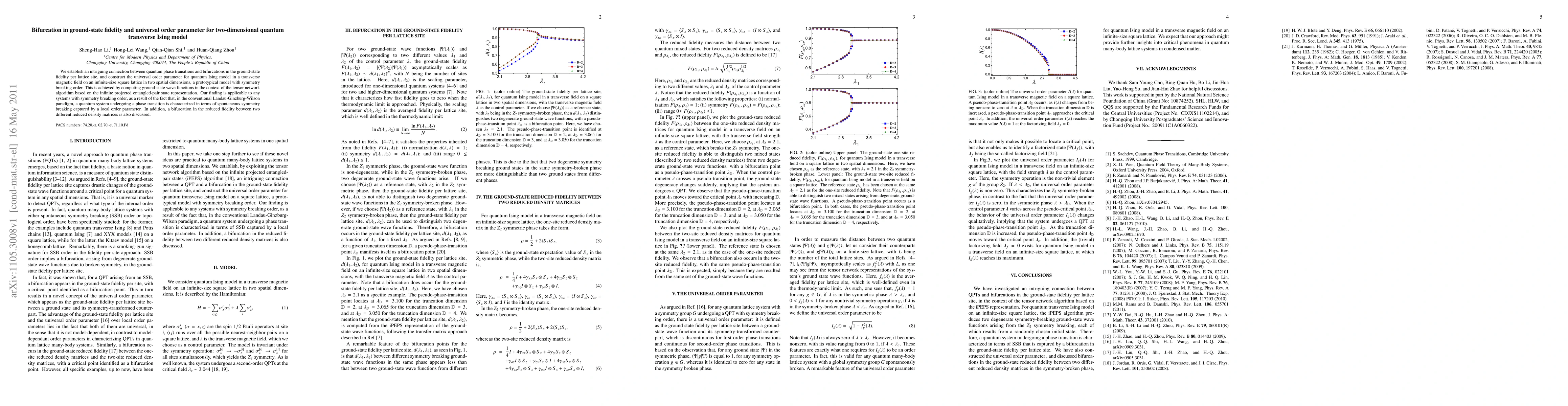 This paper establishes a link between quantum phase transitions and bifurcations in ground-state fidelity for the two-dimensional transverse Ising model, constructing a universal order parameter using tensor network algorithms. The findings are broadly applicable to systems with symmetry breaking order.