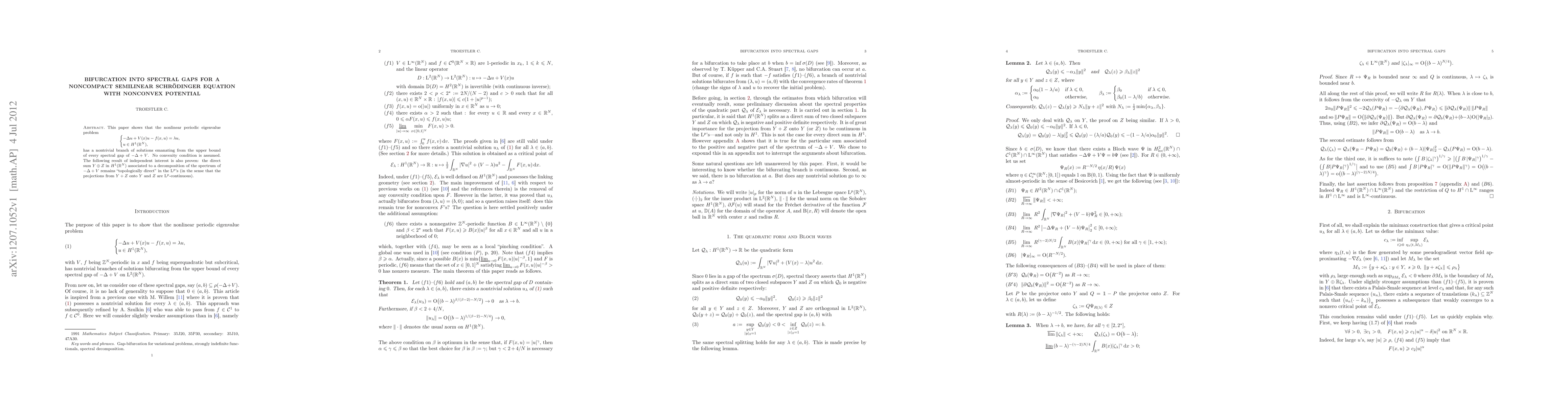 This paper shows that the nonlinear periodic eigenvalue problem $${cases} -\Delta u + V(x) u - f(x,u) = \lambda u, u \in H^1(\IR^N), {cases}$$ has a nontrivial branch of solutions emanating from the upper bound of every spectral gap of $-\Delta + V$. No convexity condition is assumed. The following result of independent interest is also proven: the direct sum $Y \oplus Z$ in $H^1(\IR^N)$ associated to a decomposition of the spectrum of $-\Delta+V$ remains "topologically direct" in the $L^p$'s (in the sense that the projections from $Y+Z$ onto $Y$ and $Z$ are $L^p$-continuous).