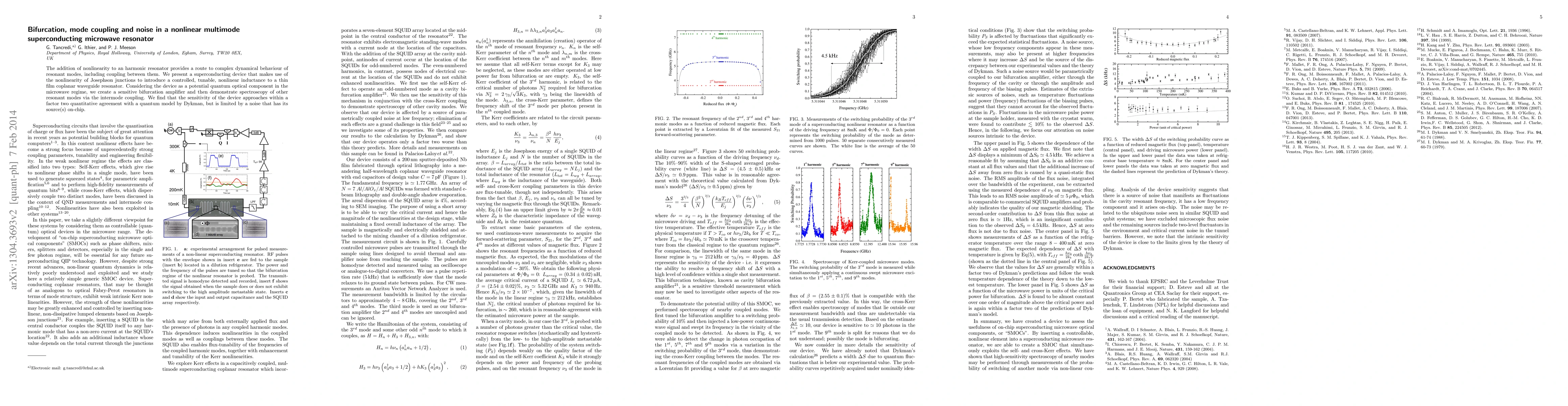 The addition of nonlinearity to an harmonic resonator provides a route to complex dynamical behaviour of resonant modes, including coupling between them. We present a superconducting device that makes use of the nonlinearity of Josephson junctions to introduce a controlled, tunable, nonlinear inductance to a thin film coplanar waveguide resonator. Considering the device as a potential quantum optical component in the microwave regime, we create a sensitive bifurcation amplifier and then demonstrate spectroscopy of other resonant modes via the intermode coupling. We find that the sensitivity of the device approaches within a factor two quantitative agreement with a quantum model by Dykman, but is limited by a noise that has its source(s) on-chip.