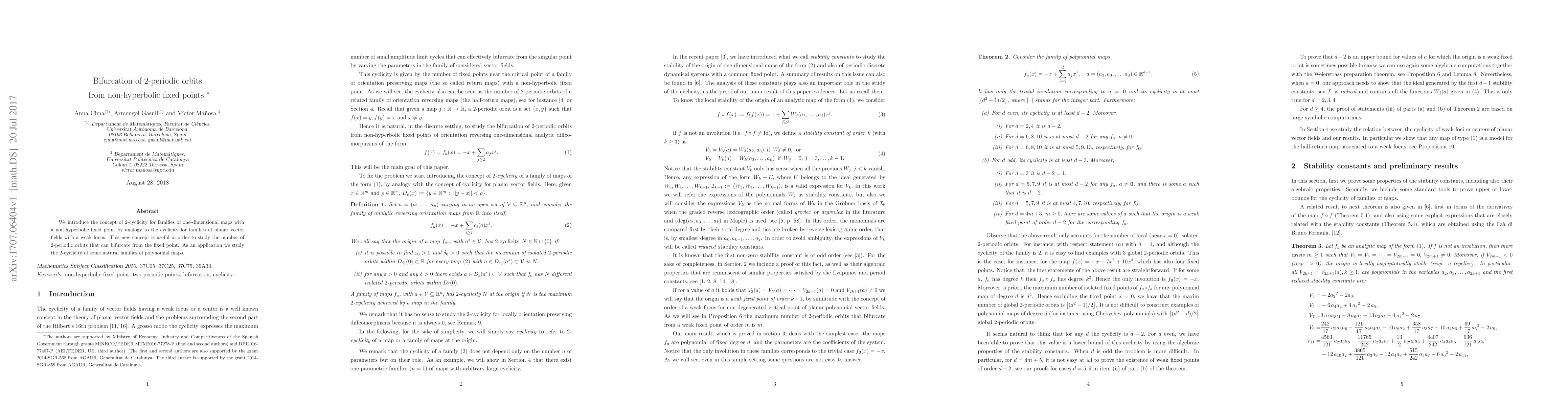 Researchers introduce a concept of 2-cyclicity to study periodic orbits from non-hyperbolic fixed points in one-dimensional maps, providing insights into bifurcation patterns.