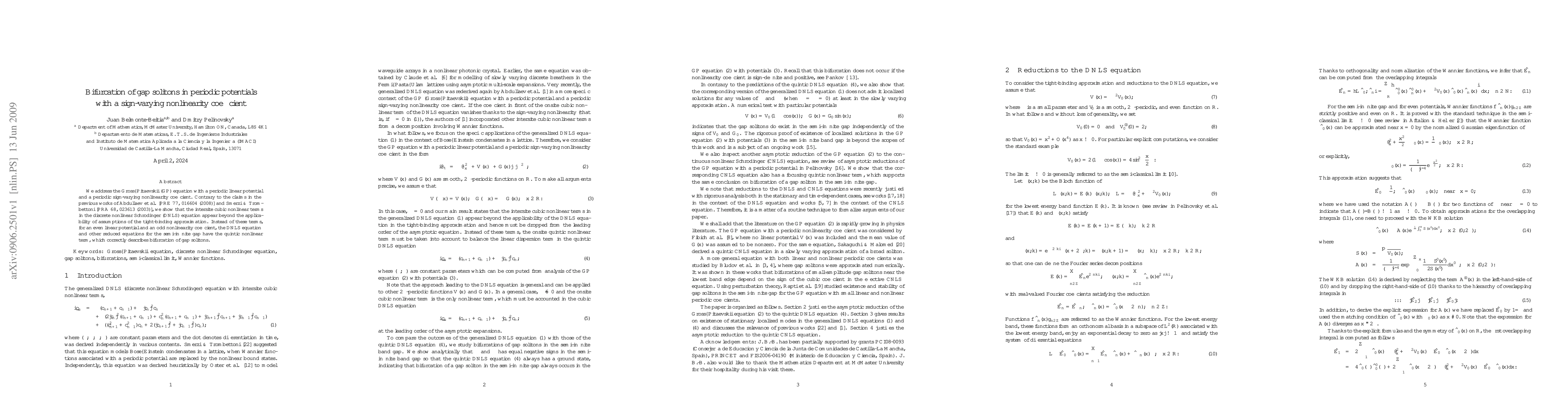 This research challenges previous claims about gap solitons in periodic potentials with sign-varying nonlinearity. It demonstrates that intersite cubic nonlinear terms in the discrete nonlinear Schrödinger equation emerge beyond tight-binding approximation's validity. For even potentials and odd nonlinear coefficients, the equation features a quintic nonlinear term, accurately describing gap soliton bifurcations.