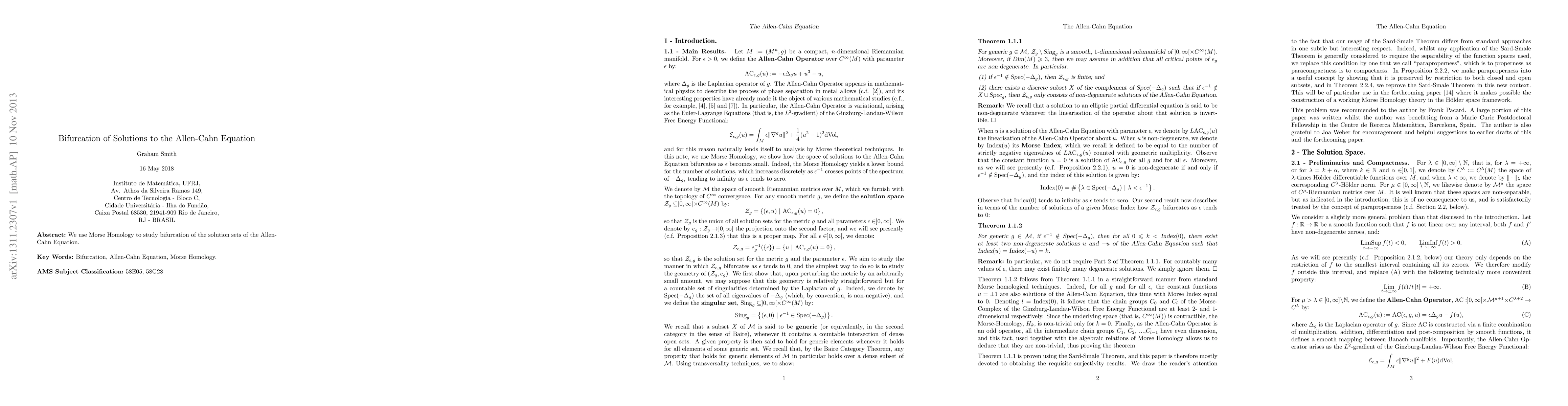 Summary: This paper employs Morse Homology to investigate the bifurcation phenomena in the solution sets of the Allen-Cahn Equation, providing insights into the dynamics of phase transitions.