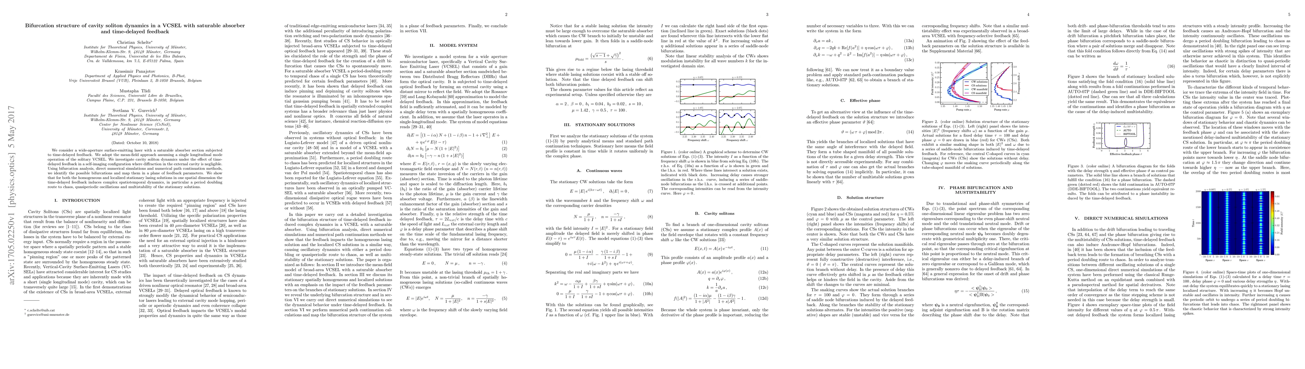 This paper investigates the bifurcation structure of cavity soliton dynamics in a wide-aperture VCSEL with saturable absorber and time-delayed feedback. Through bifurcation analysis and numerical simulations, it reveals complex spatiotemporal dynamics including period doubling, quasiperiodic oscillations, and multistability induced by the feedback.