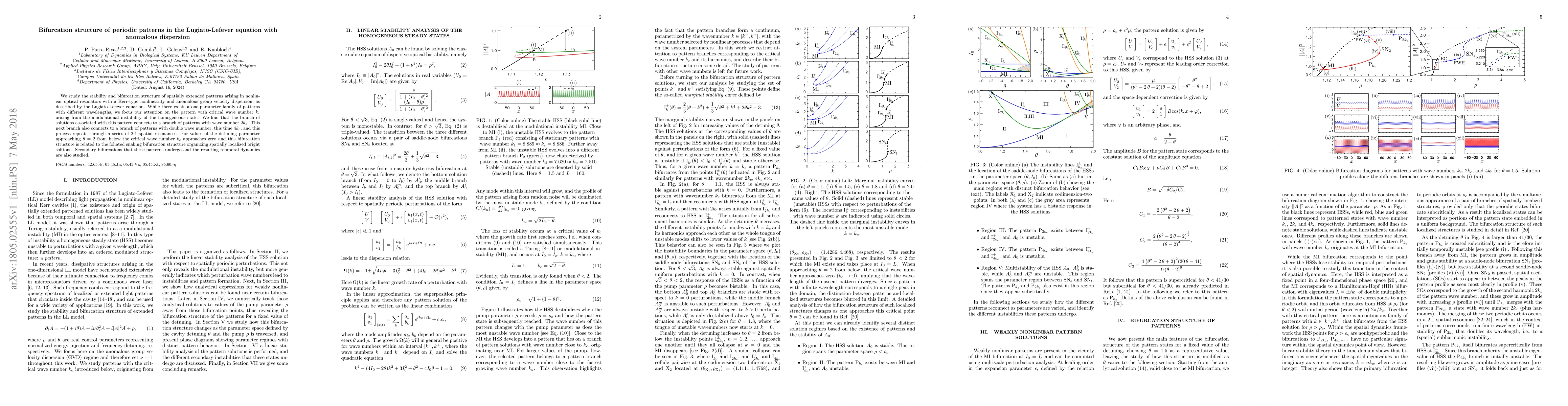 This paper investigates the bifurcation structure of periodic patterns in the Lugiato-Lefever equation, focusing on the modulational instability leading to a series of 2:1 spatial resonances. The study reveals a complex pattern of bifurcations that organize spatially localized bright solitons, with secondary bifurcations influencing temporal dynamics.