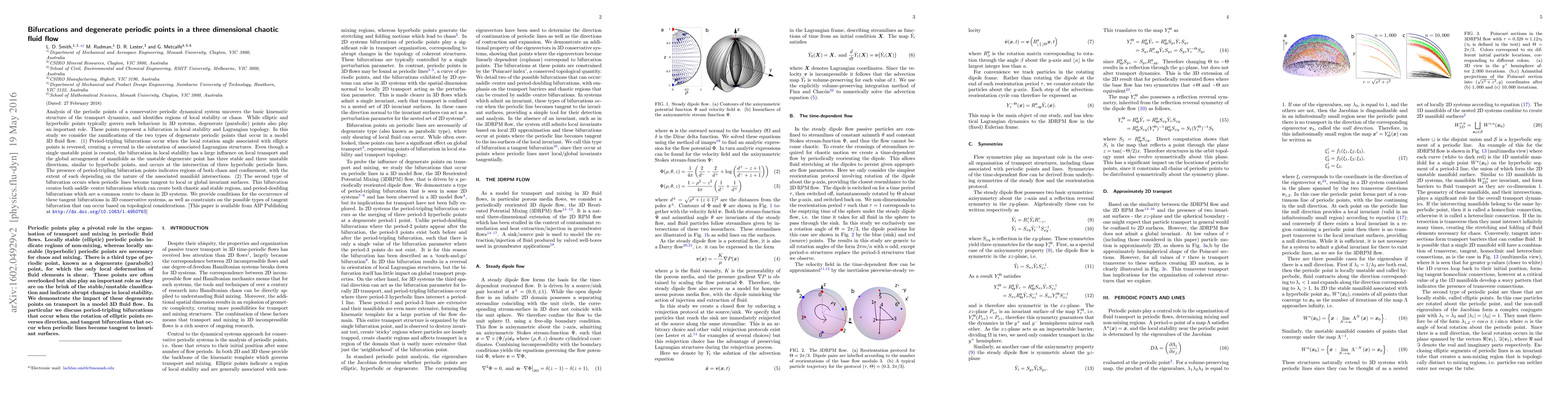 This paper explores the role of degenerate periodic points in a three-dimensional chaotic fluid flow, identifying bifurcations that influence local stability and transport dynamics. It highlights period-tripling and tangent bifurcations, showing how these affect the global arrangement of manifolds and the emergence of chaos or confinement.