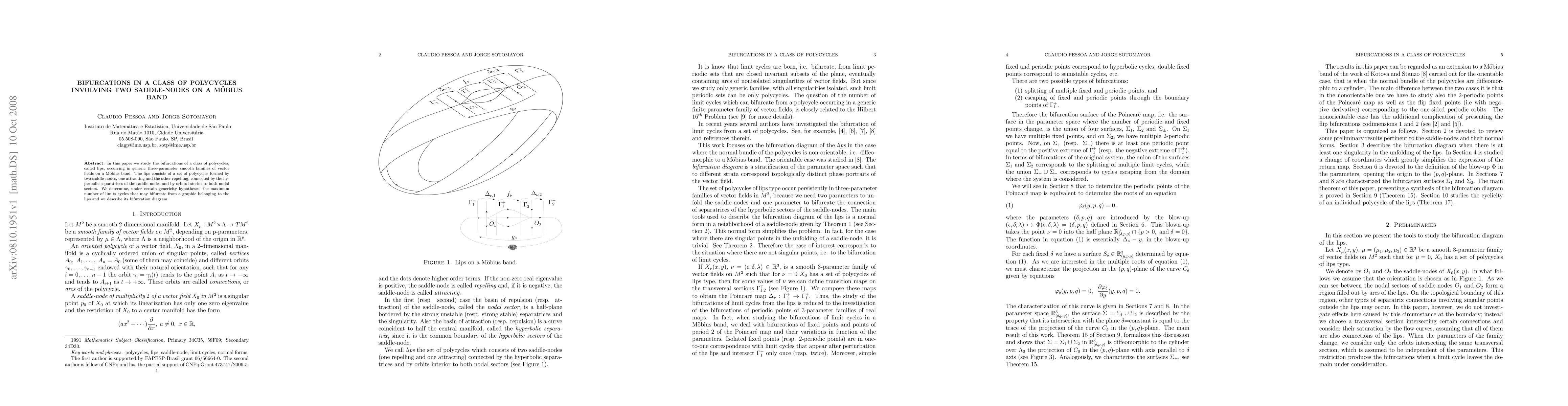 This paper investigates bifurcations in a class of polycycles called lips on a Möbius band, focusing on the maximum number of limit cycles that can emerge from two saddle-nodes connected by separatrices. It provides a detailed bifurcation diagram under specific genericity conditions.