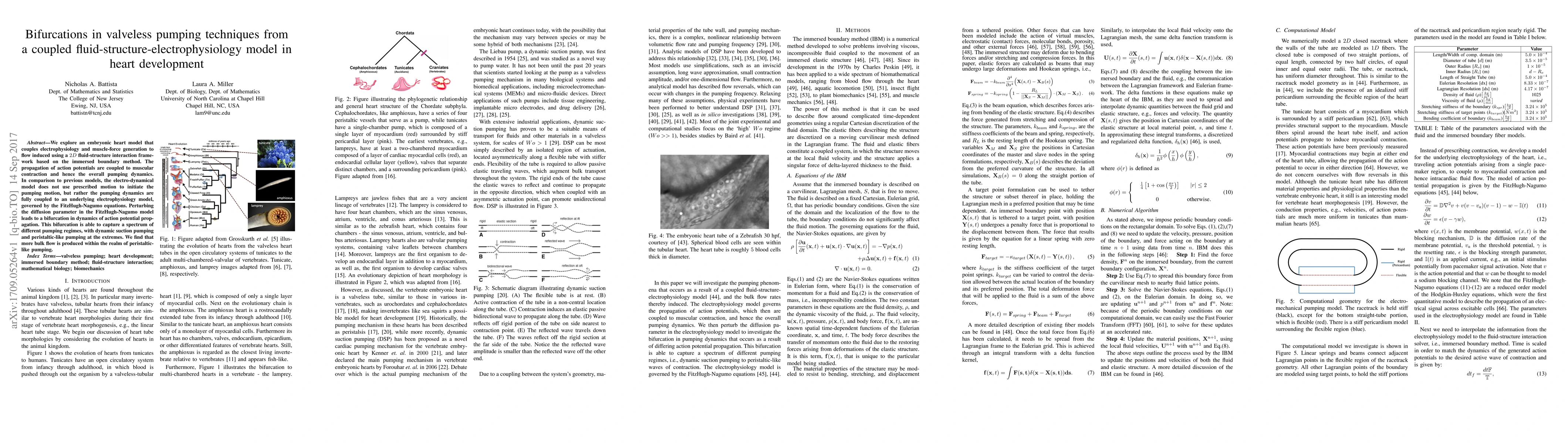 We explore an embryonic heart model that couples electrophysiology and muscle-force generation to flow induced using a $2D$ fluid-structure interaction framework based on the immersed boundary method. The propagation of action potentials are coupled to muscular contraction and hence the overall pumping dynamics. In comparison to previous models, the electro-dynamical model does not use prescribed motion to initiate the pumping motion, but rather the pumping dynamics are fully coupled to an underlying electrophysiology model, governed by the FitzHugh-Nagumo equations. Perturbing the diffusion parameter in the FitzHugh-Nagumo model leads to a bifurcation in dynamics of action potential propagation. This bifurcation is able to capture a spectrum of different pumping regimes, with dynamic suction pumping and peristaltic-like pumping at the extremes. We find that more bulk flow is produced within the realm of peristaltic-like pumping.