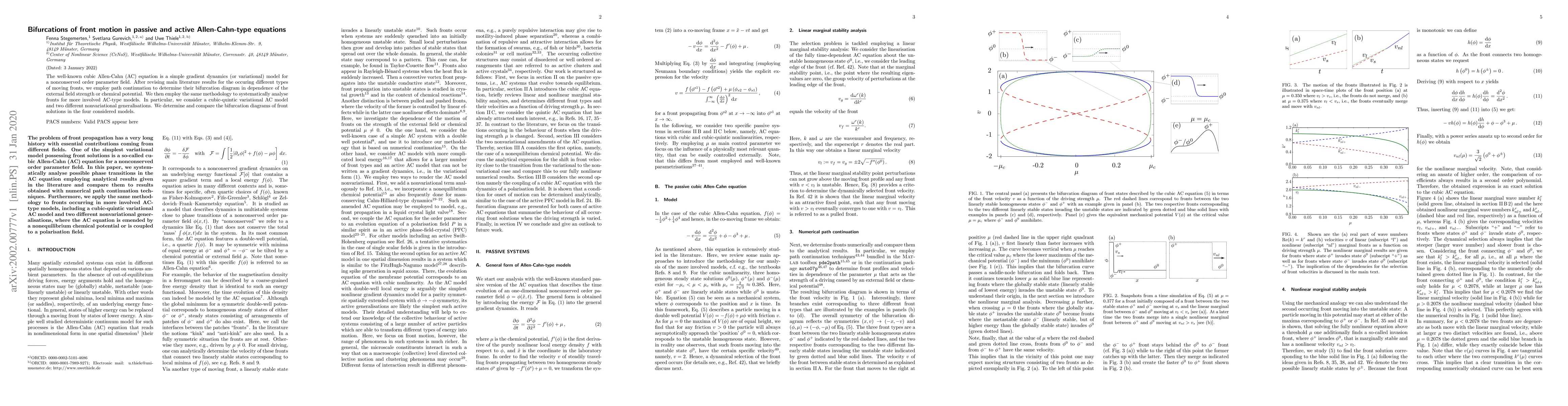 This research paper revises and analyzes moving fronts in various Allen-Cahn-type models, using path continuation to determine bifurcation diagrams based on external field strength. It compares cubic, cubic-quintic, and two nonvariational models, offering insights into front motion dynamics.