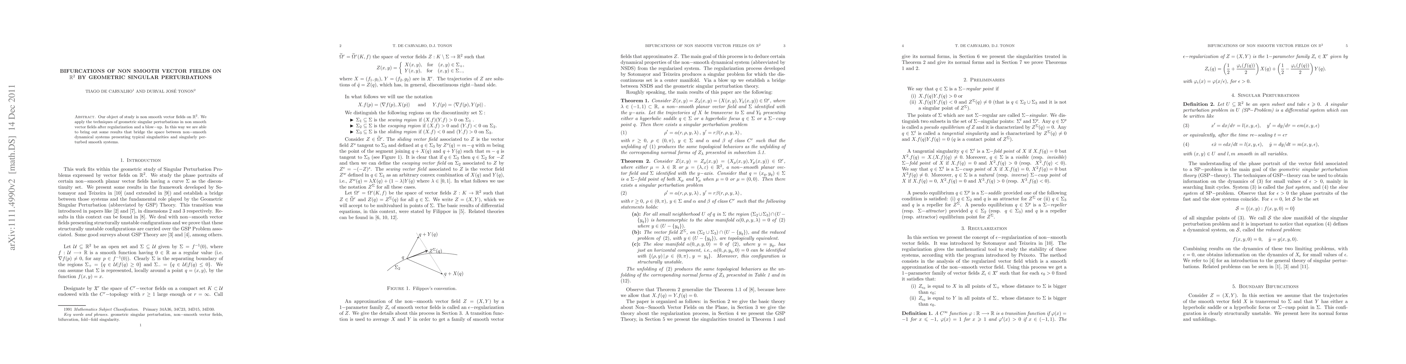 Our object of study is non smooth vector fields on $\R^2$. We apply the techniques of geometric singular perturbations in non smooth vector fields after regularization and a blow$-$up. In this way we are able to bring out some results that bridge the space between non$-$smooth dynamical systems presenting typical singularities and singularly perturbed smooth systems.
