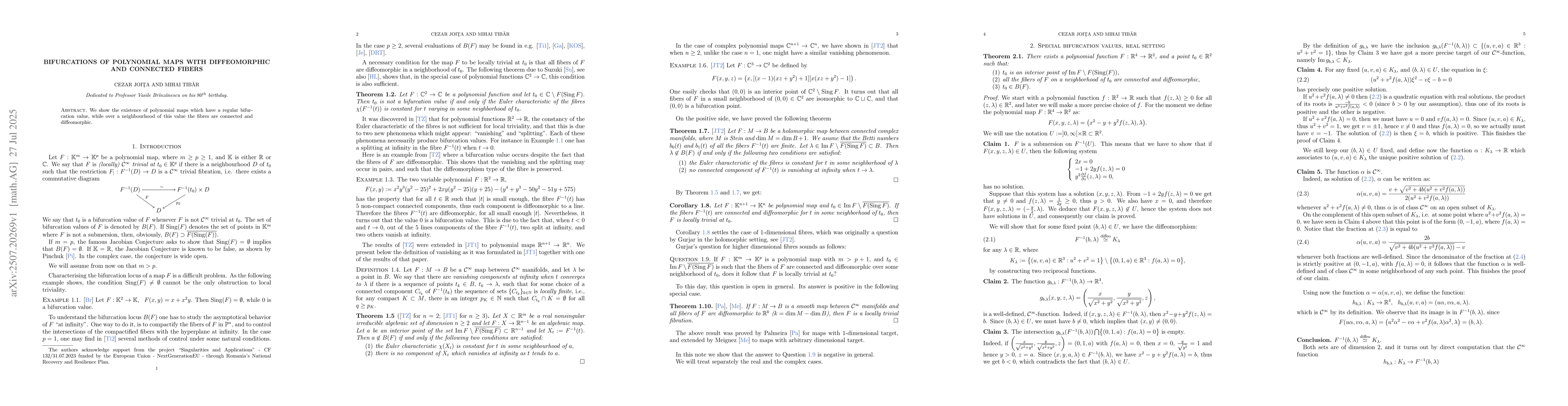 We show the existence of polynomial maps which have a regular bifurcation value, while over a neighbourhood of this value the fibres are connected and diffeomorphic.