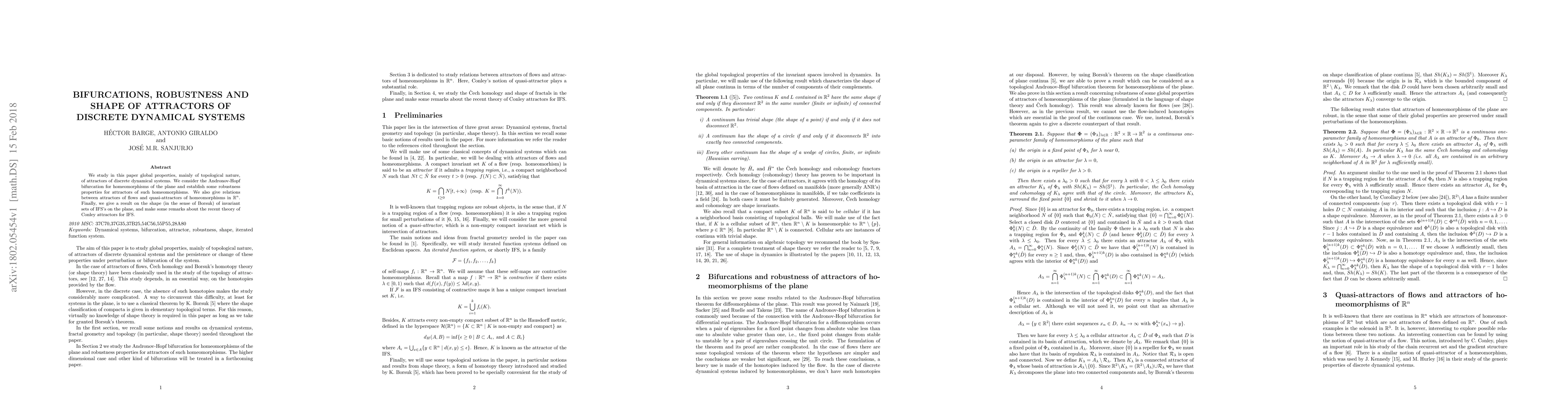This paper investigates topological properties of attractors in discrete dynamical systems, focusing on the robustness of attractors under Andronov-Hopf bifurcations. It also explores connections between attractors of flows and quasi-attractors of homeomorphisms, and discusses the shape of invariant sets in Iterated Function Systems (IFS).