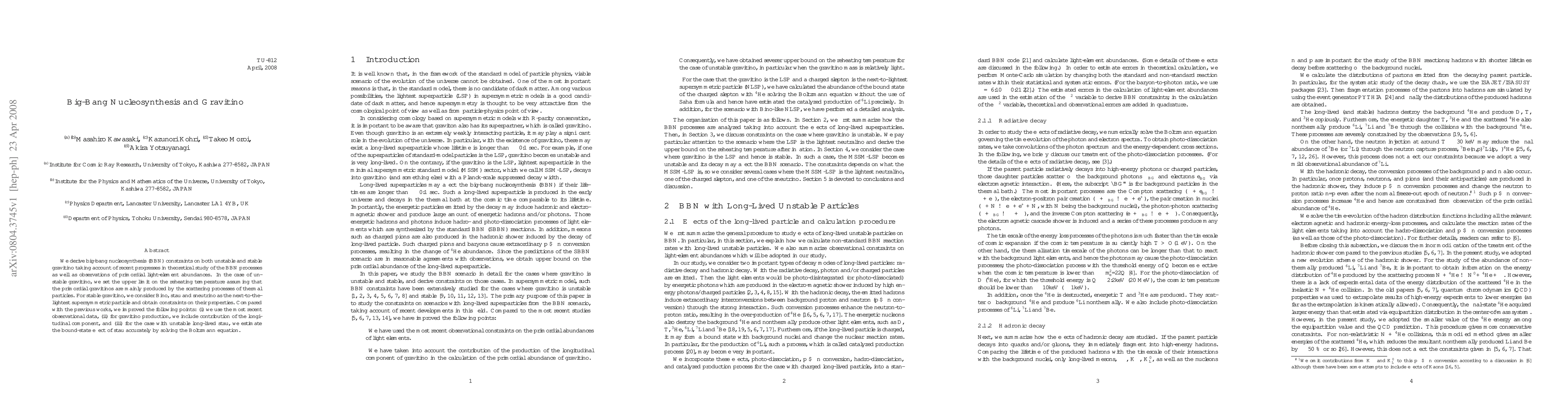 This paper derives constraints on gravitino properties from big-bang nucleosynthesis (BBN), considering both unstable and stable gravitinos. It sets upper limits on the reheating temperature for unstable gravitinos and provides constraints on stable gravitinos, including Bino, stau, and sneutrino, using recent observational data and improved theoretical models.